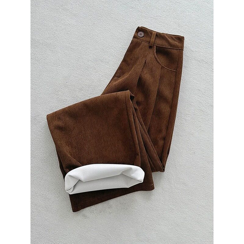 Ретро кофейные вельветовые повседневные брюки, изысканный стиль, оверсайз