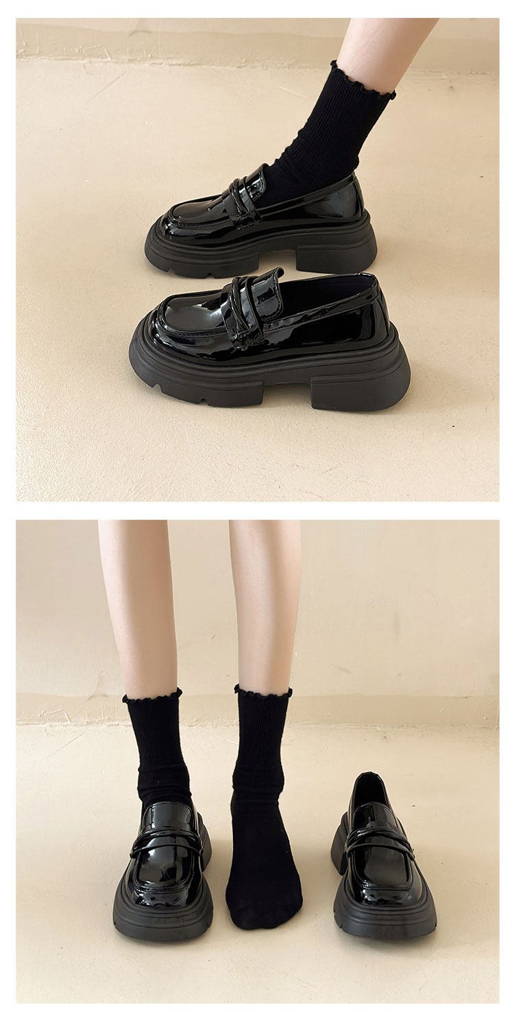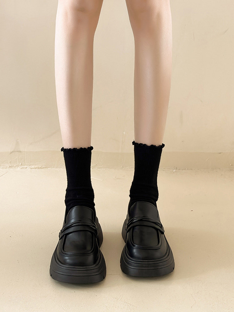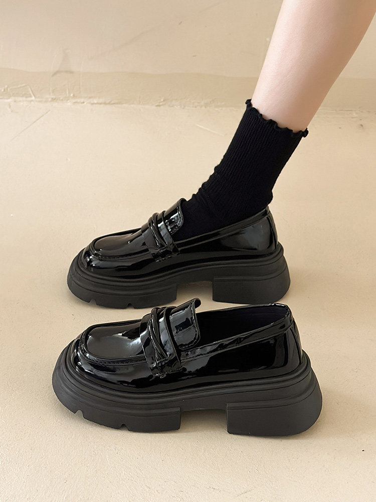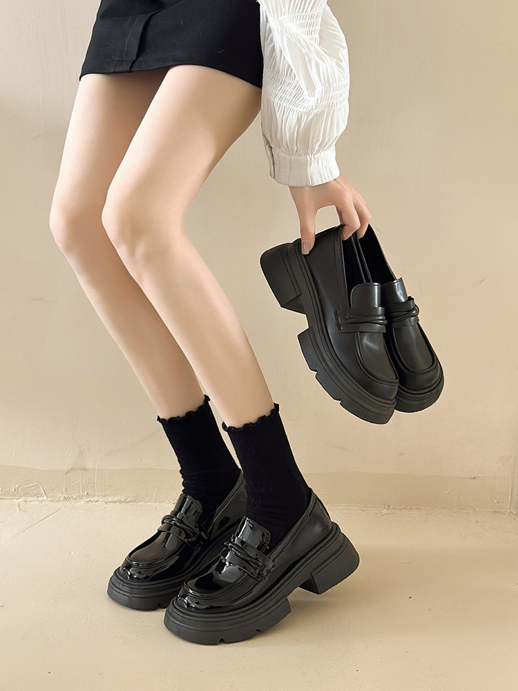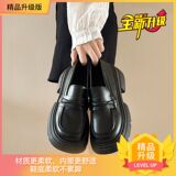 Демисезонная обувь на платформе в английском стиле для кожаной обуви, черные лоферы, в британском стиле