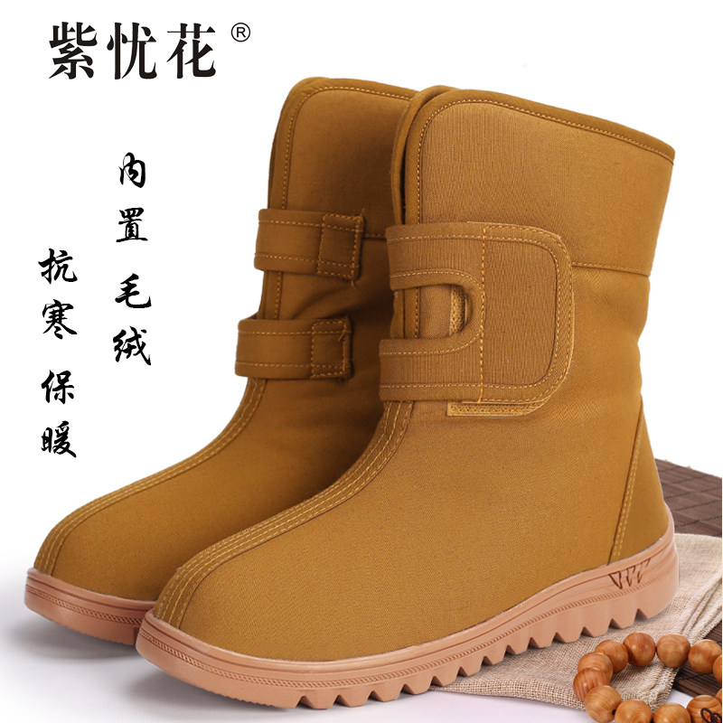 紫忧花 Туфли-монки, хлопковая обувь, зимняя бархатная обувь, сохраняющая тепло, мужская и женская, нескользящая обувь «Архат», туфли-монки, хлопковые сапоги