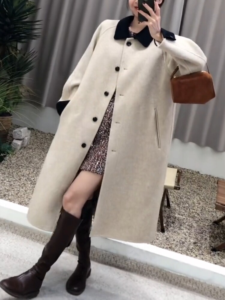 Шерстяное пальто, демисезонная куртка, лонгслив, подходит для подростков, оверсайз