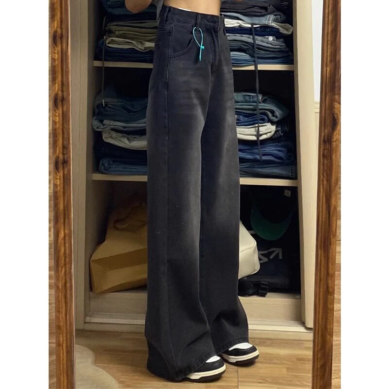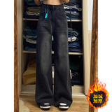 Штаны, осенние утепленные прямые свободные джинсы, большой размер, подходят для подростков, свободный крой, 2024 года