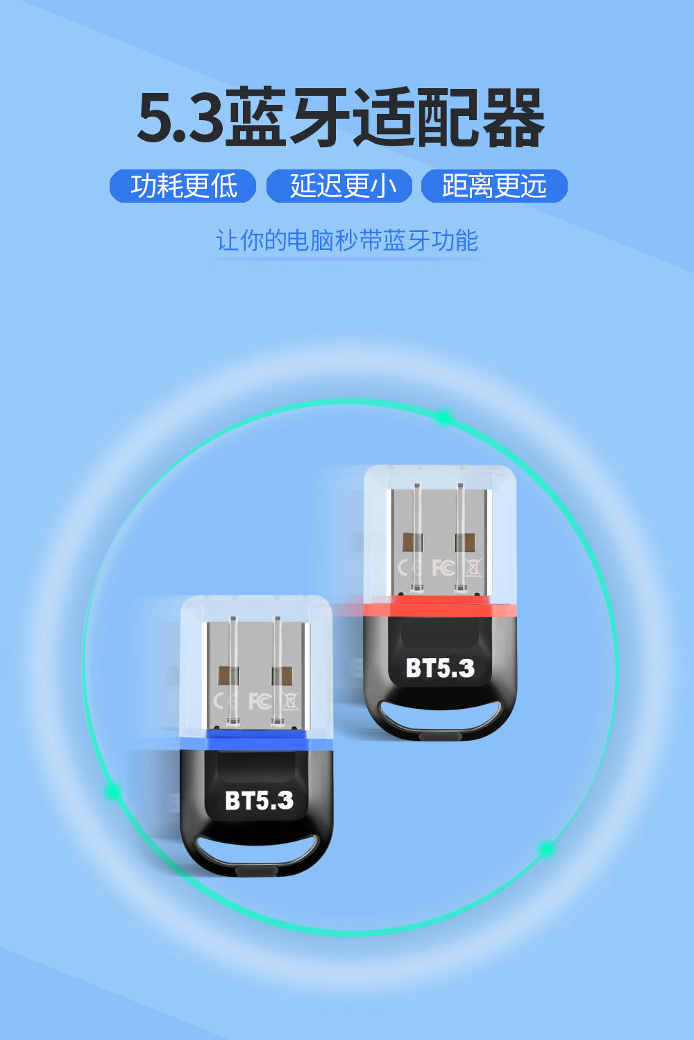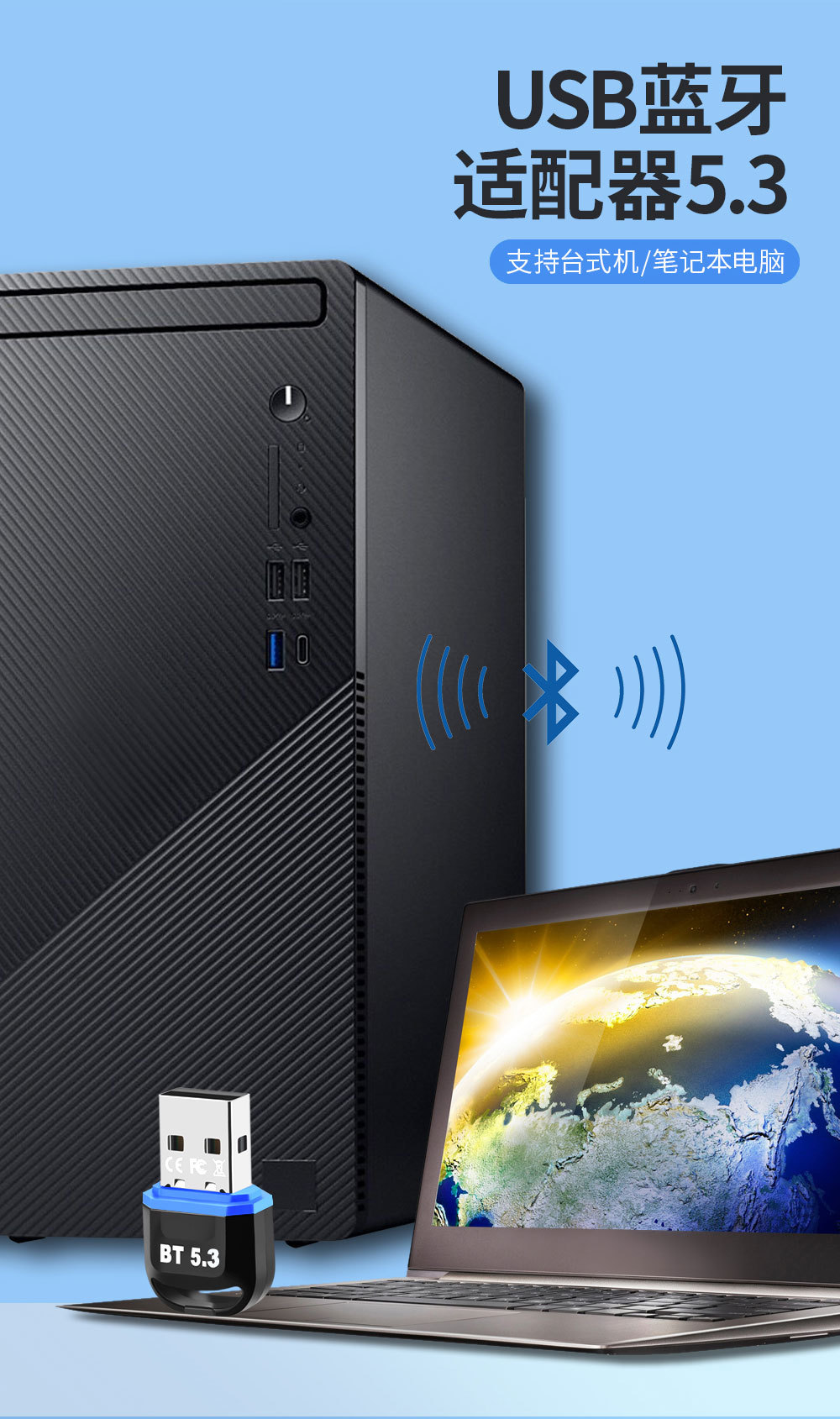Ноутбук Bluetooth Adapter 5.3 настольный компьютер 5.0 Bluetooth USB беспроводная сетевая карта WiFi приемник 600м