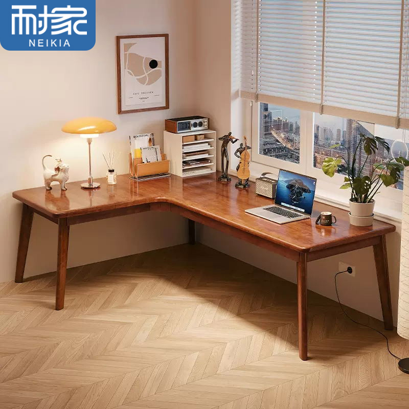 Угловой стол с твердым деревом рабочим рабочим рабочим столом для компьютера Стол спальни спальня дом L