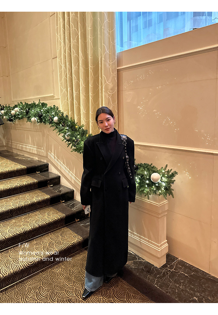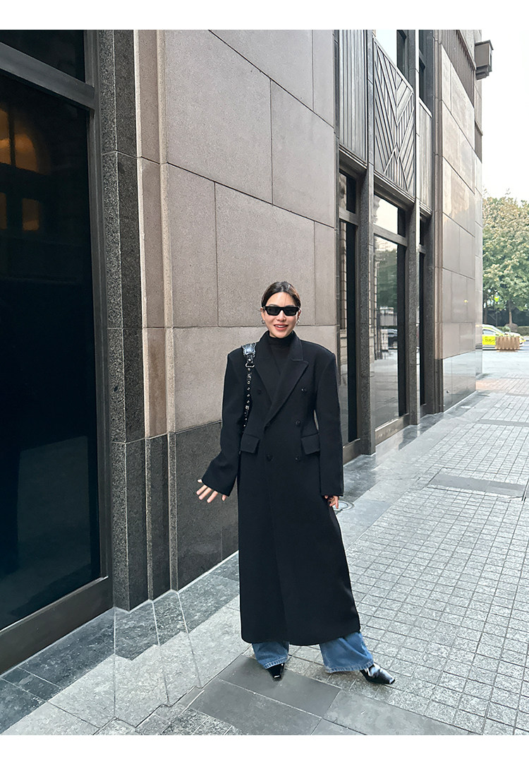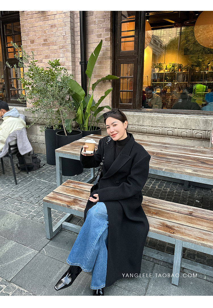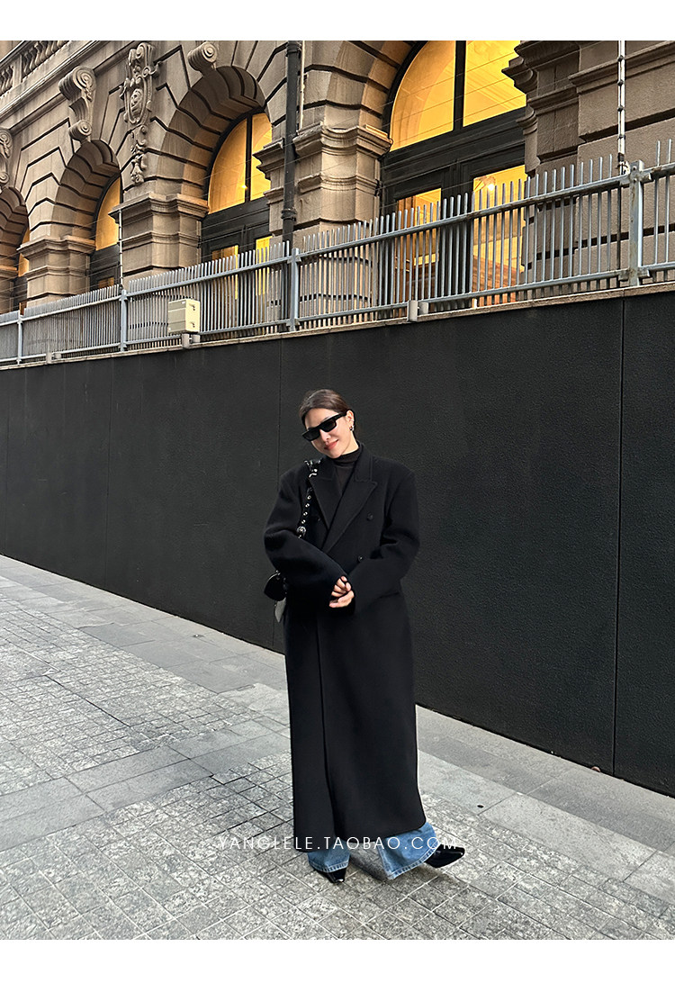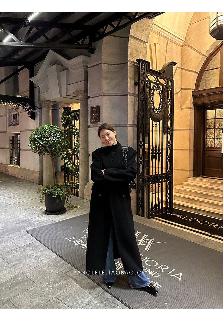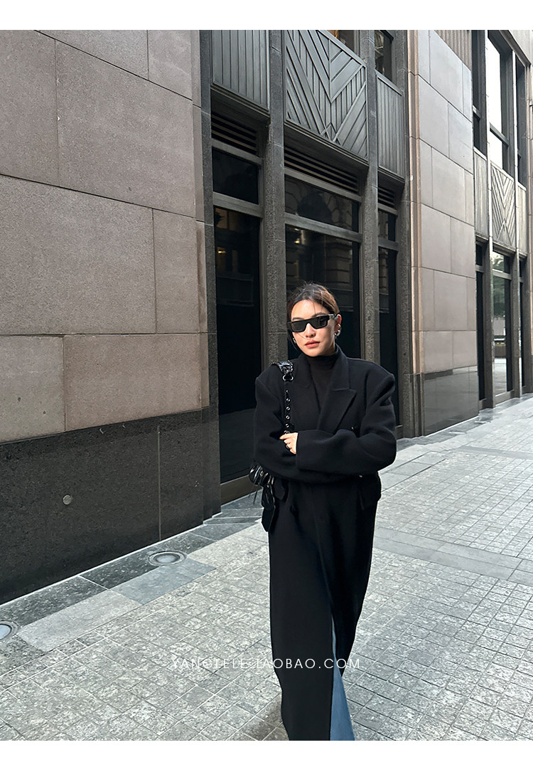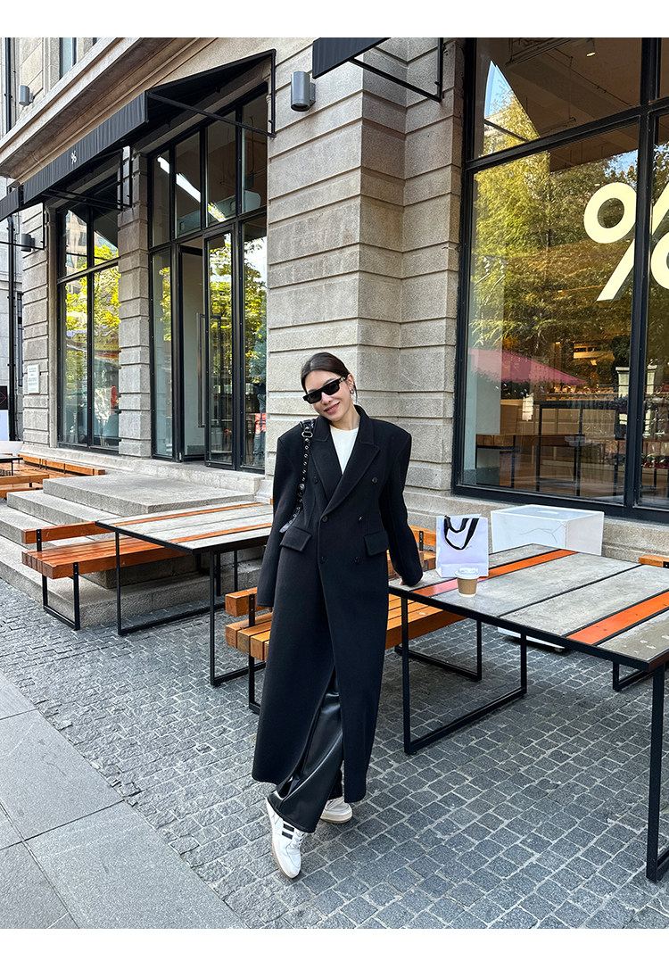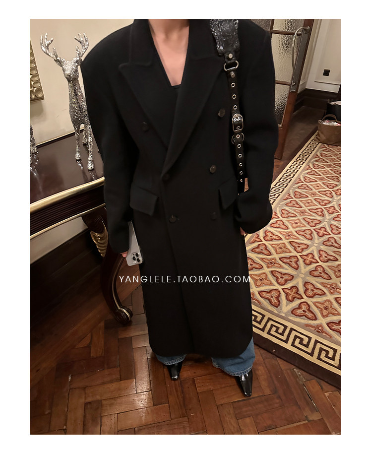 Черное двусторонное шерстяное зимнее шерстяное пальто, 2024 года, оверсайз