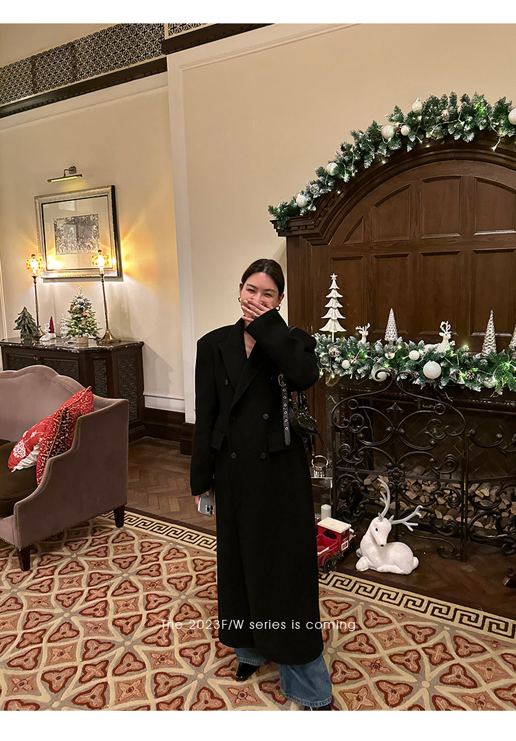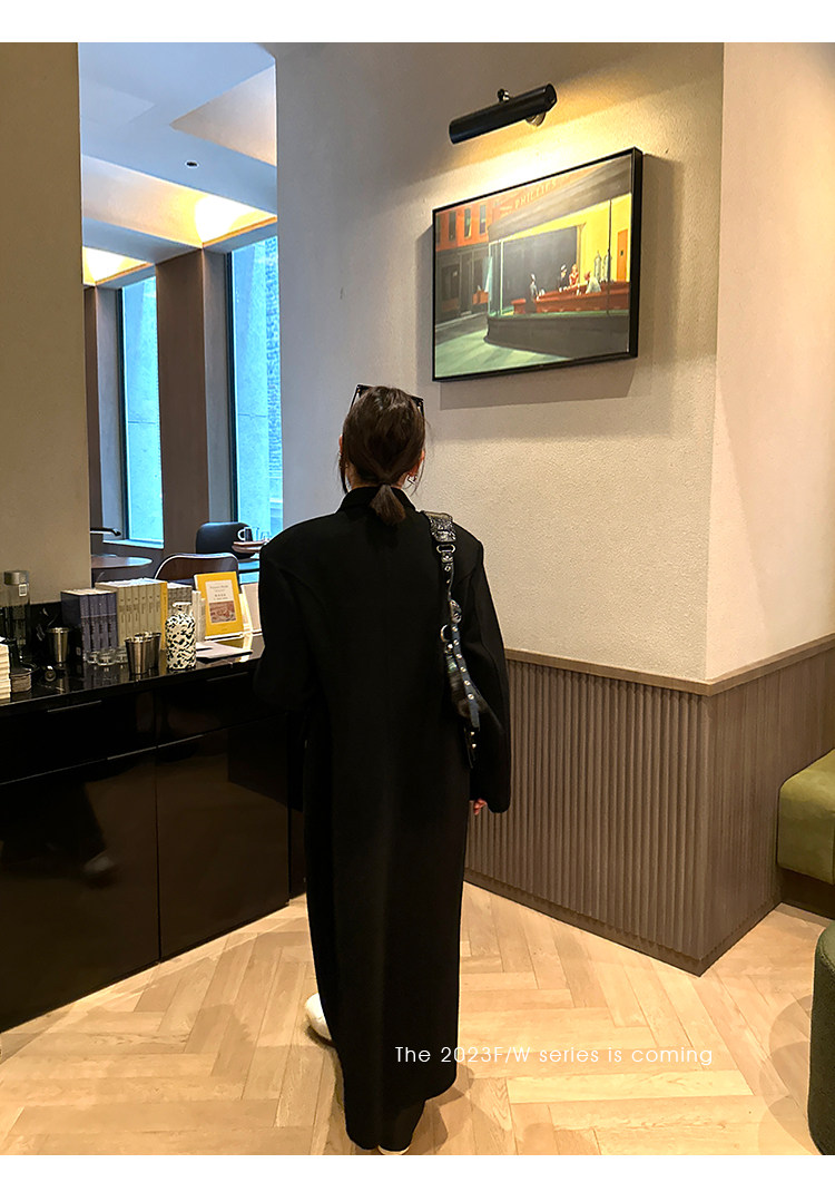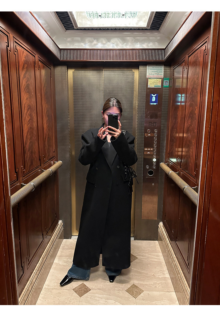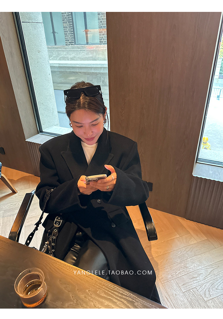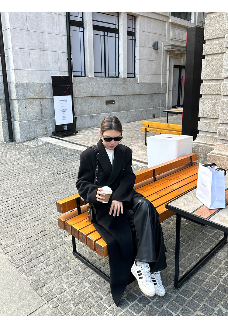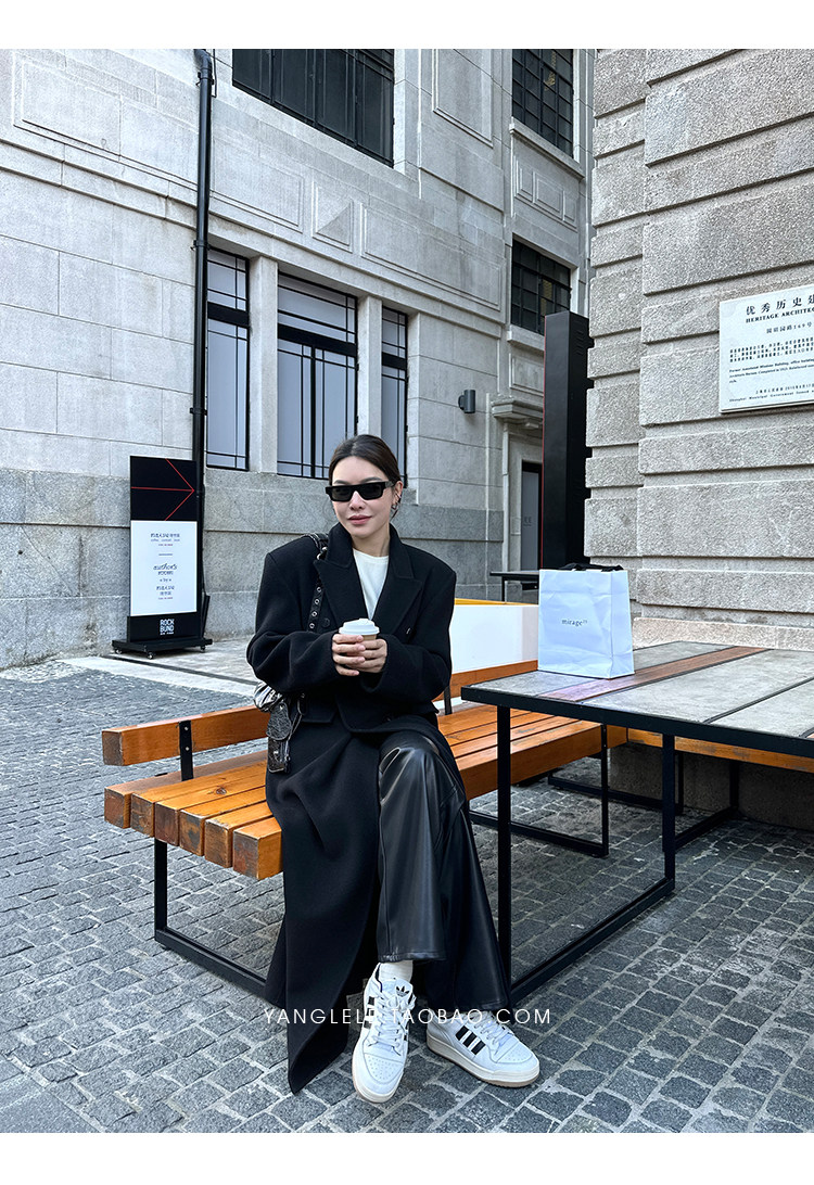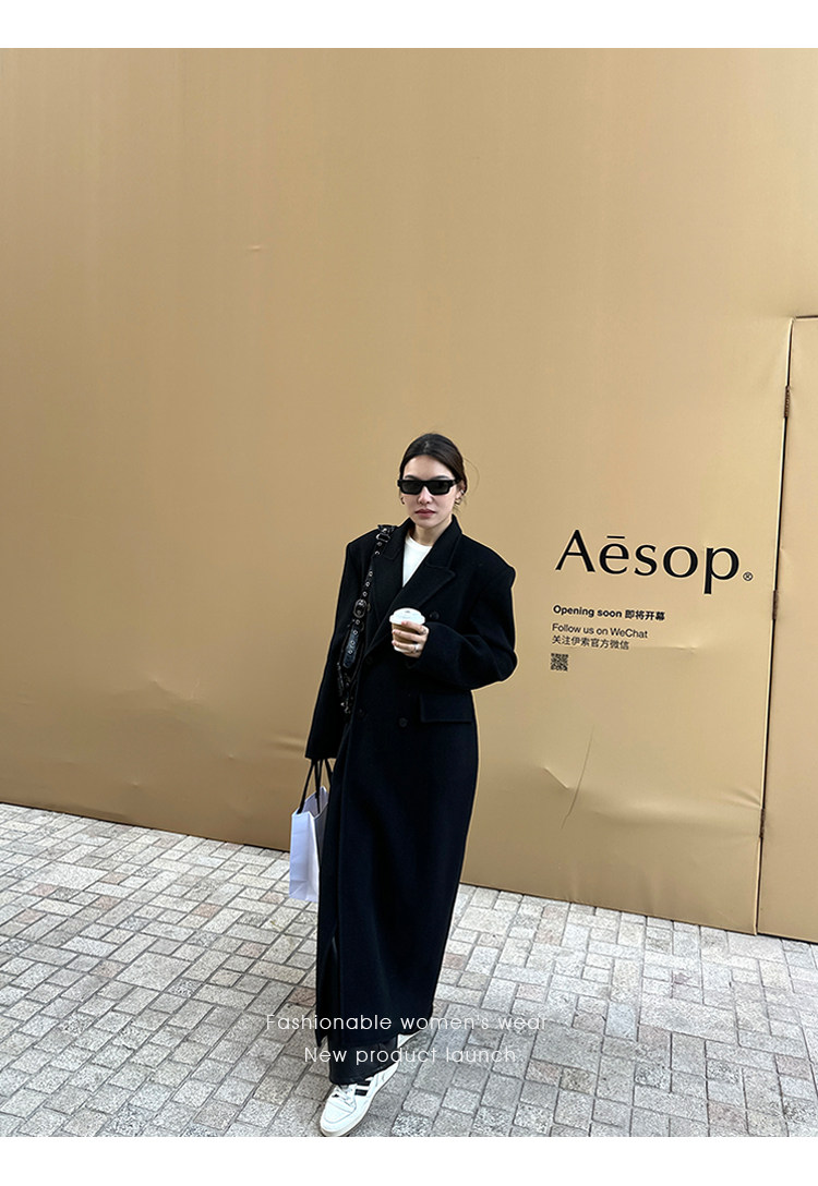 Черное двусторонное шерстяное зимнее шерстяное пальто, 2024 года, оверсайз