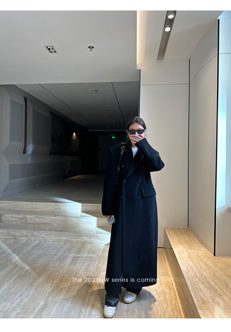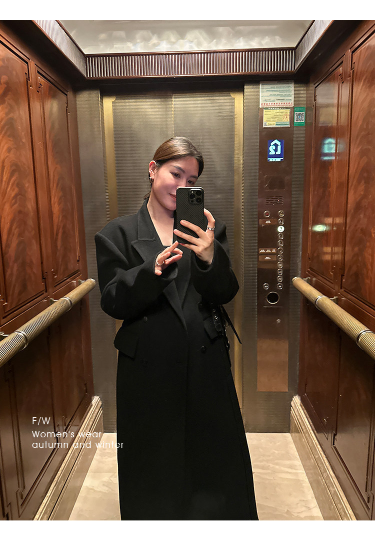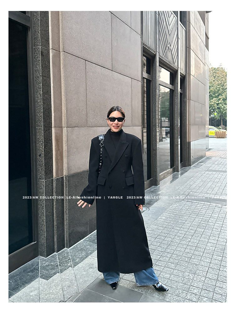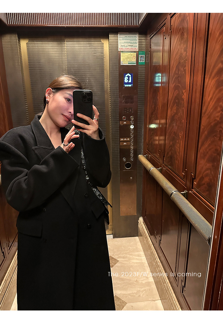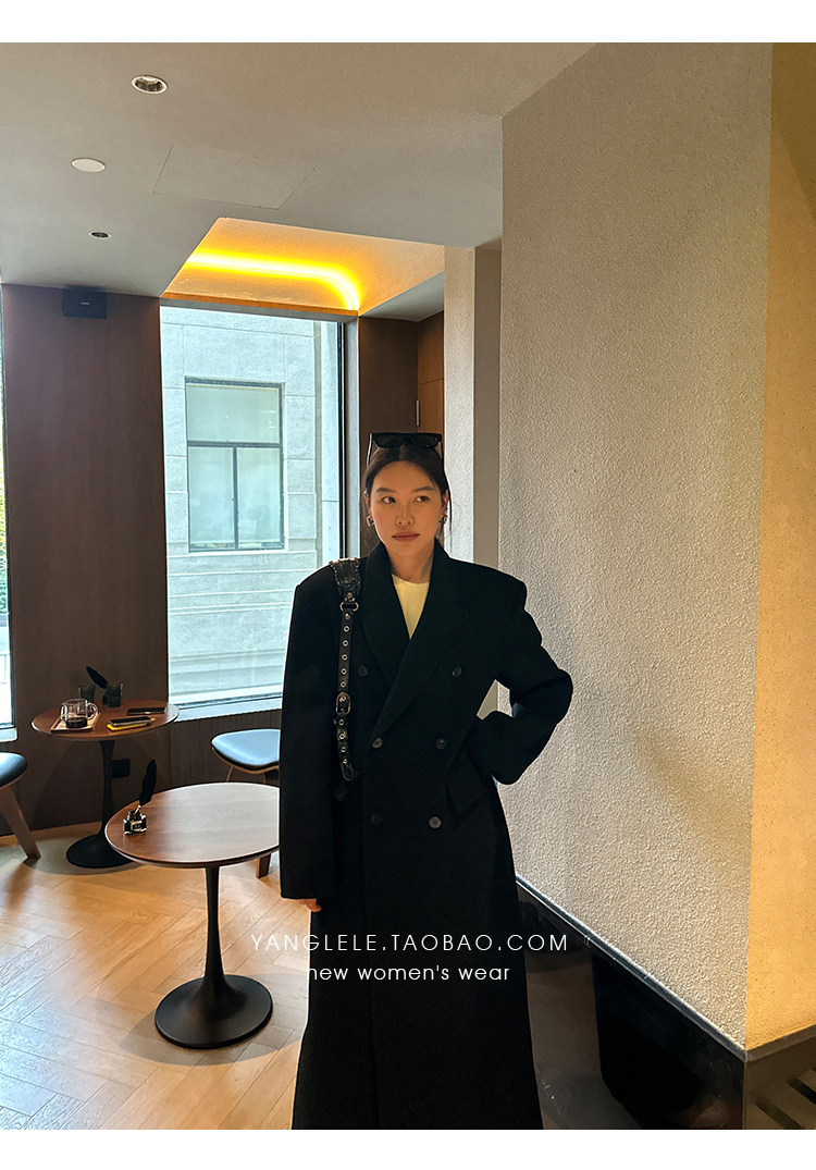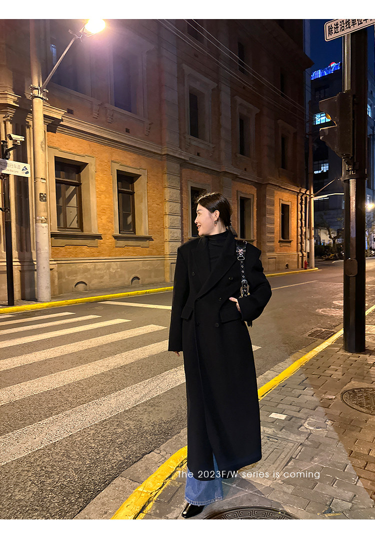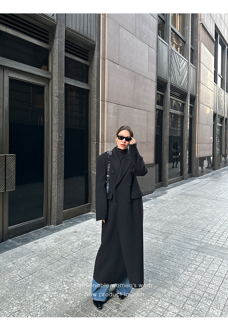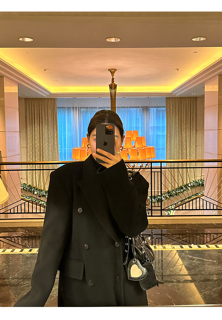 Черное двусторонное шерстяное зимнее шерстяное пальто, 2024 года, оверсайз