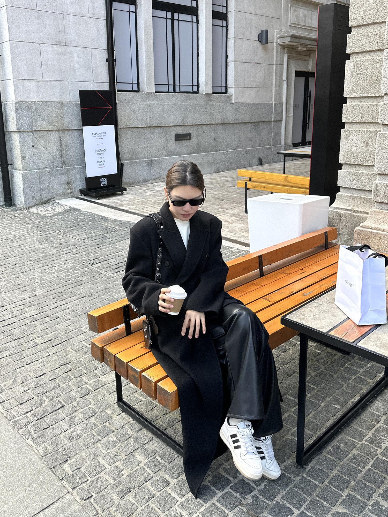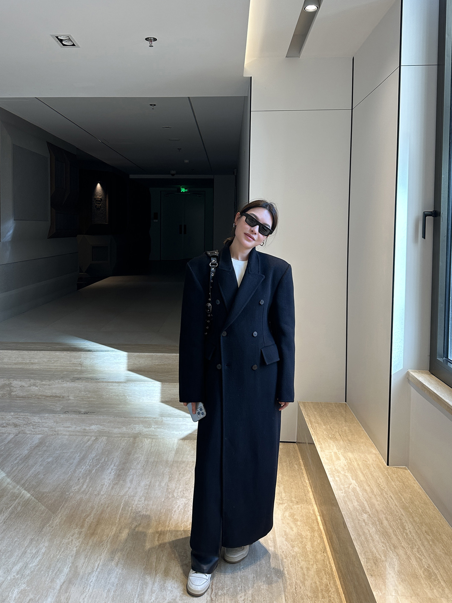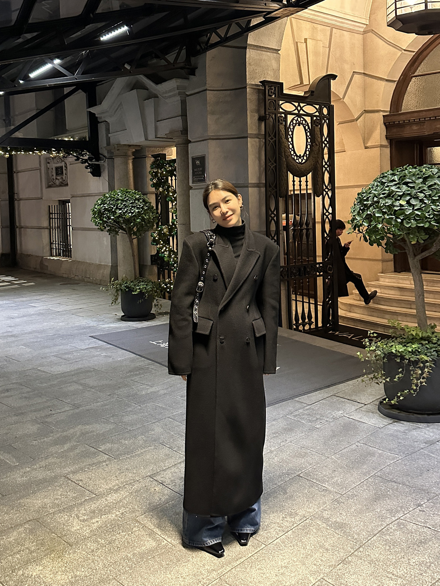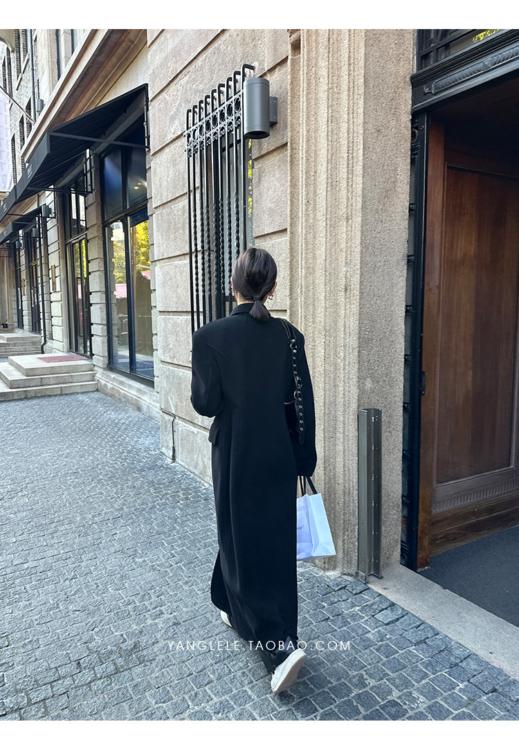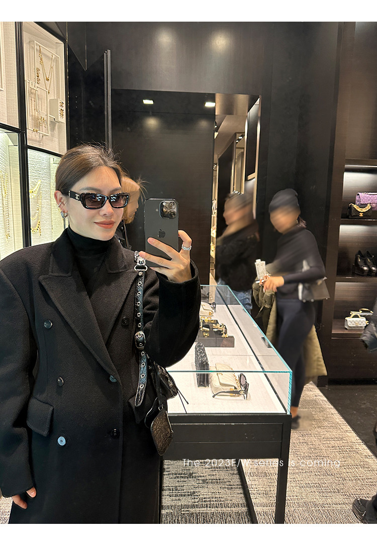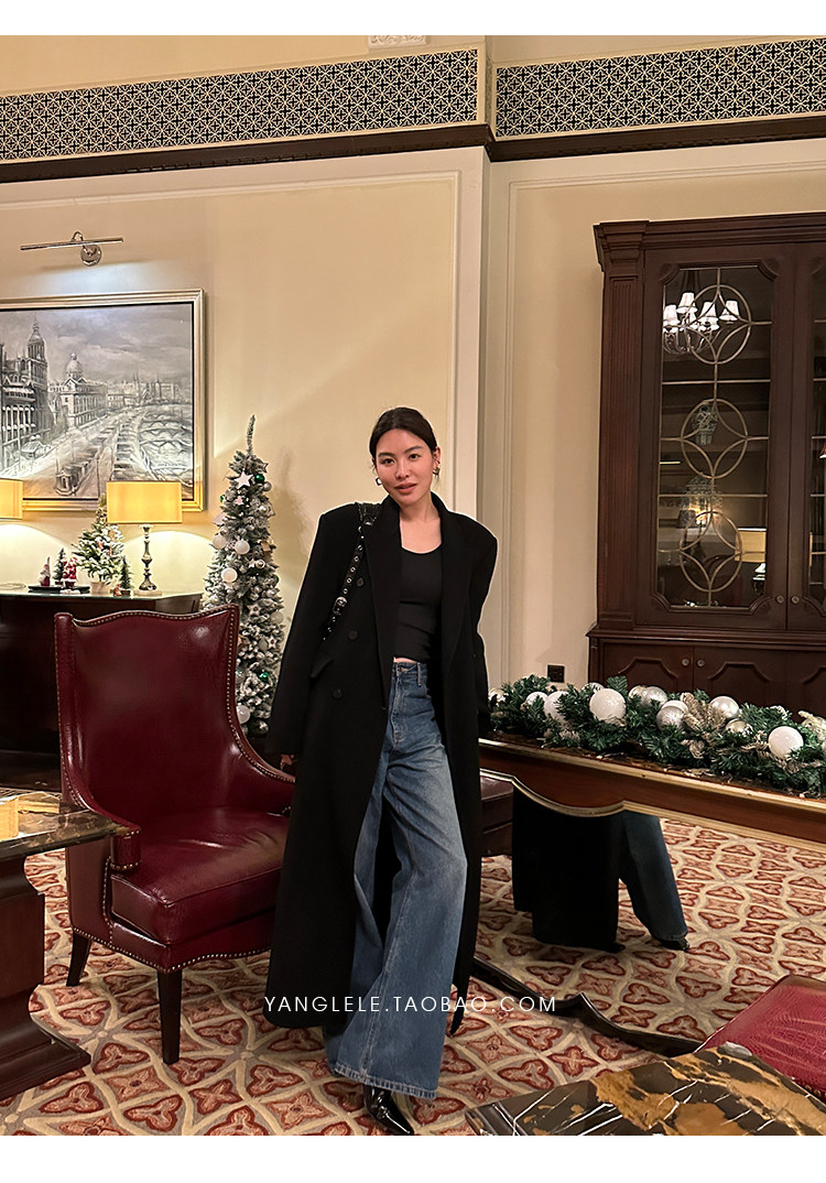 Черное двусторонное шерстяное зимнее шерстяное пальто, 2024 года, оверсайз