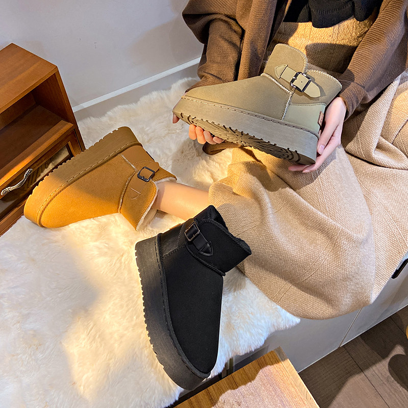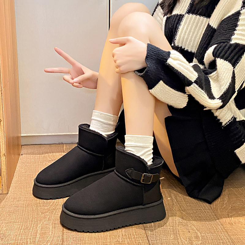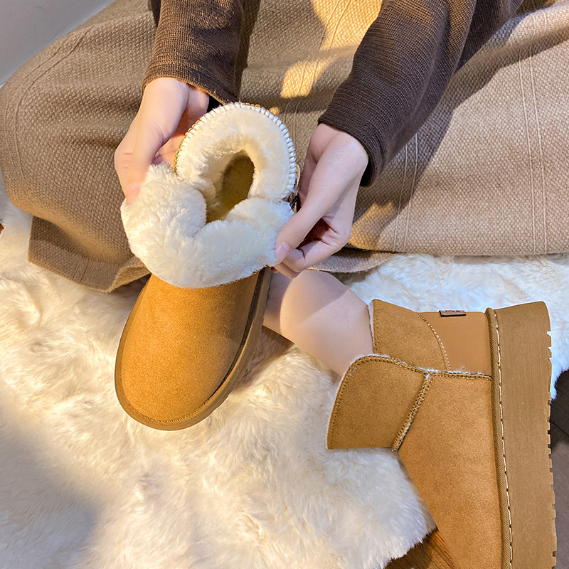 Snow Boots Женская зима 2024 Новая плюс бархатная толстая хлопчатобумажная туфли женская мех