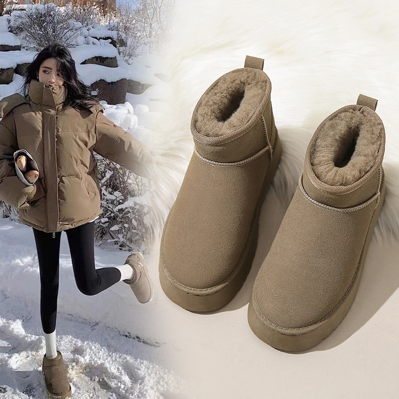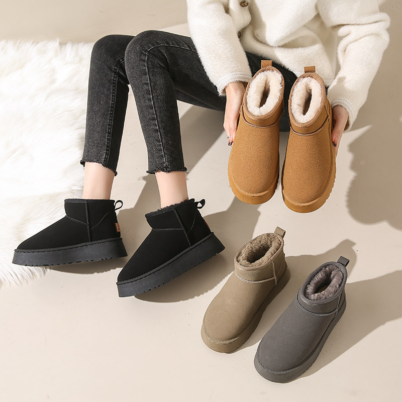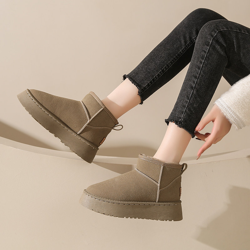 Снежные ботинки Женская зима 2024 Новая теплая хлопчатобумажная обувь плюс бархатные толстые женщины снежный хлопок