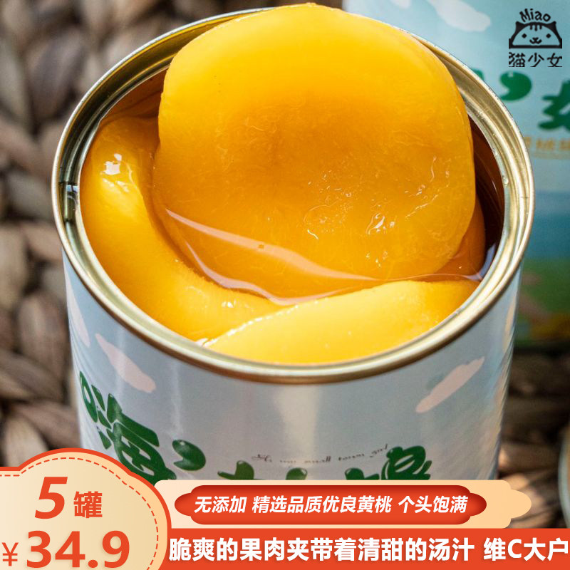 [5 банок] Привет, девочка, желтая персиковая консервированная 425 г Лаошан Специализии Свежие фрукты консервированный сахар персик