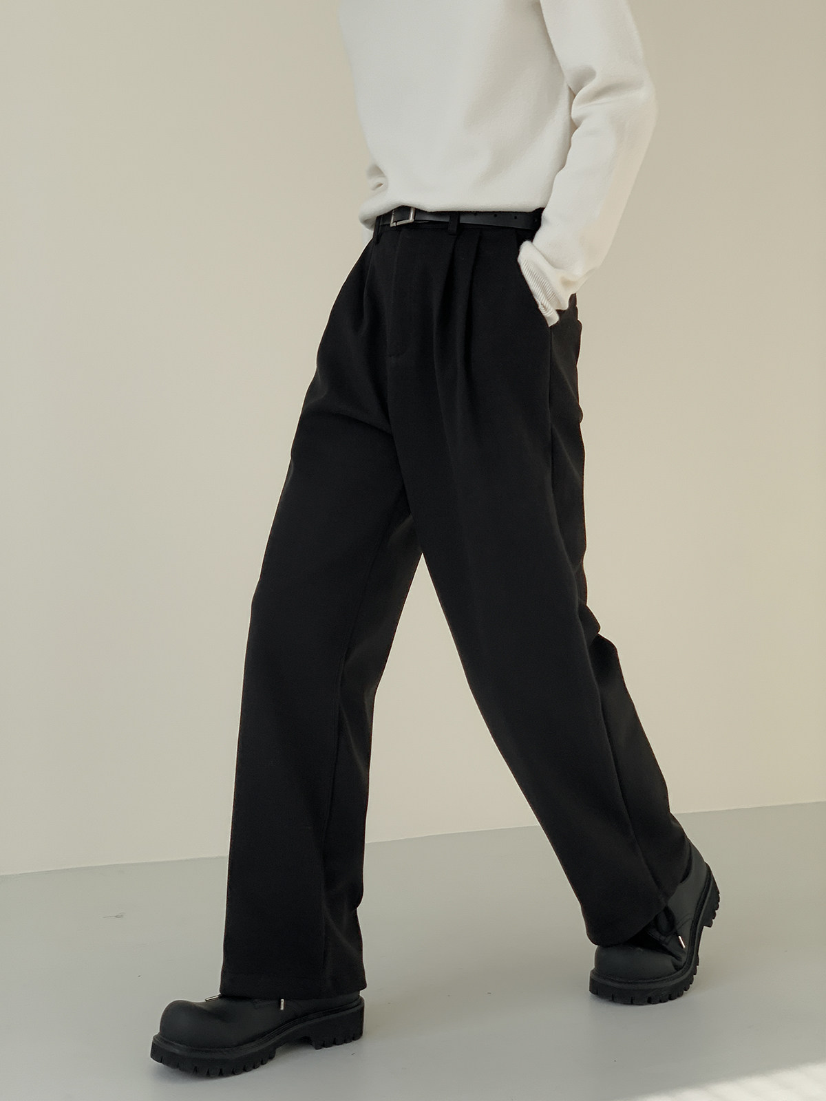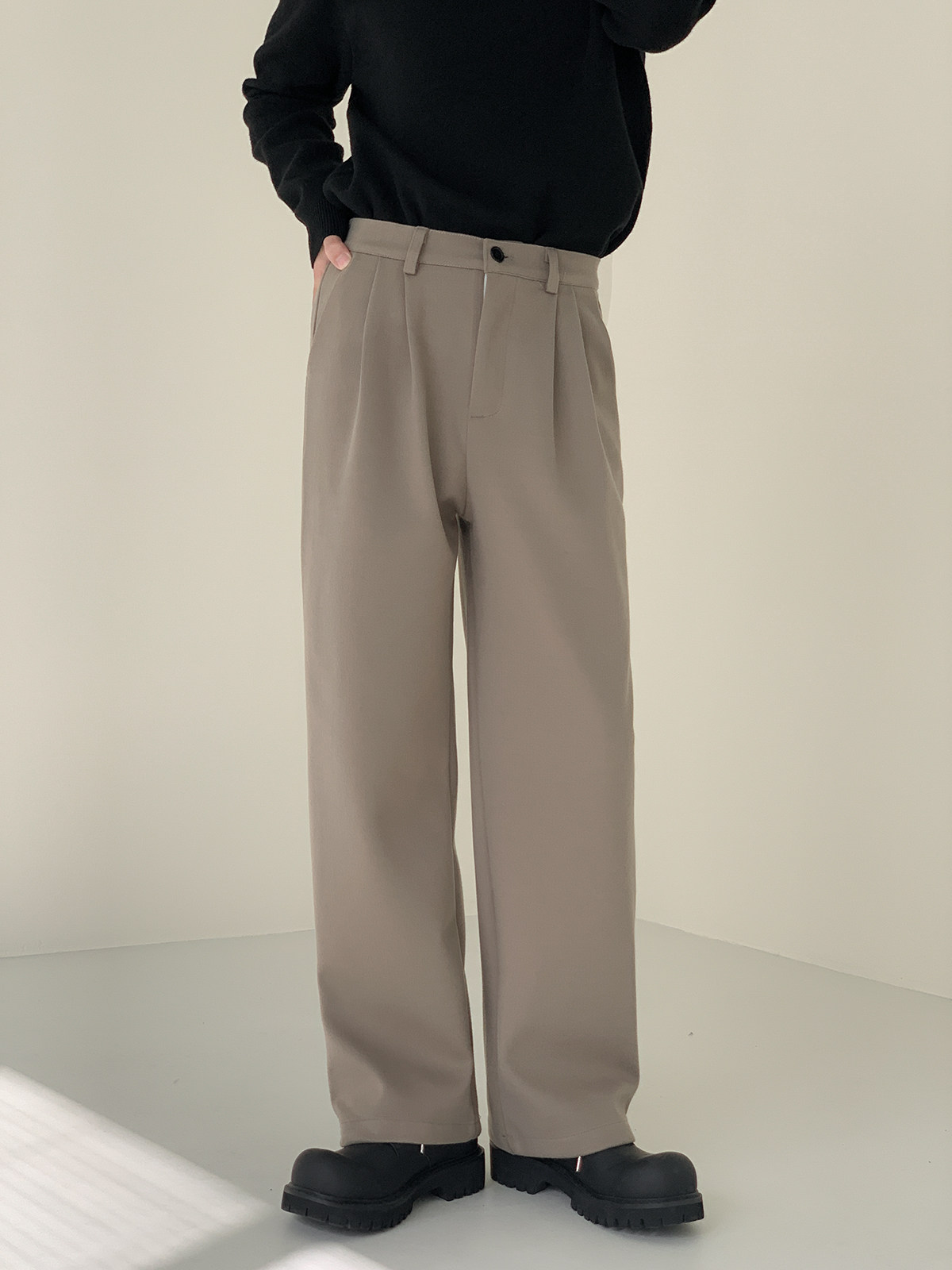Зимний шерстяной костюм, мужские штаны, удерживающие тепло повседневные брюки для отдыха, свободный прямой крой, увеличенная толщина, в корейском стиле