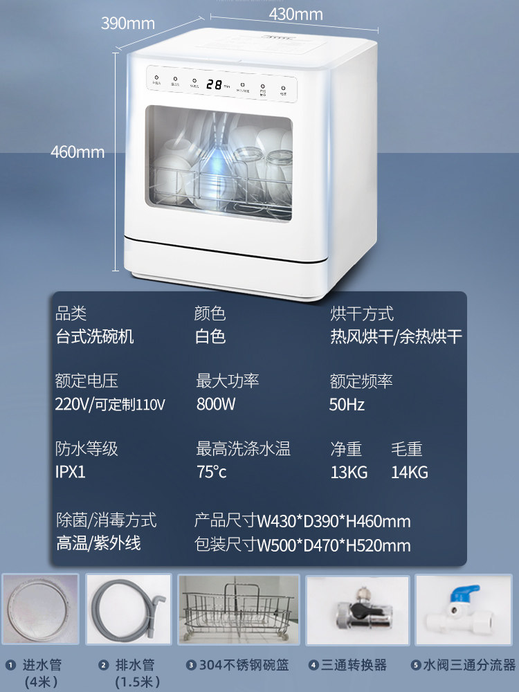 Домашняя машина домохозяйство малая 8 -личность большая мощность Полностью автоматическая дезинфекция Машина новая табличная лапша бесплатная установка 110 В