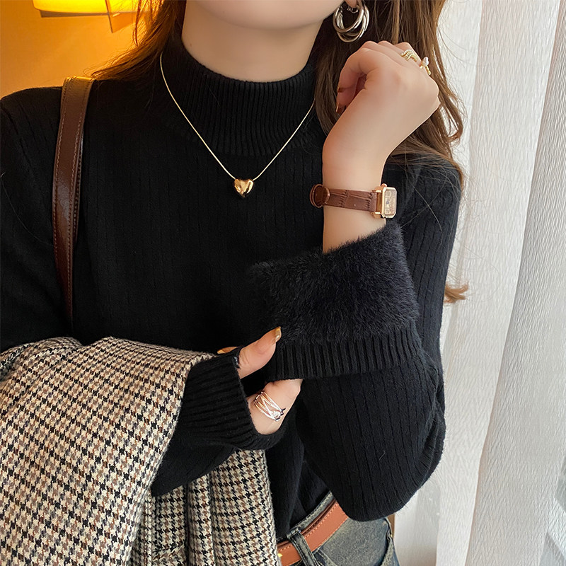 Демисезонный бархатный базовый приятный телу трикотажный свитер, высокий воротник