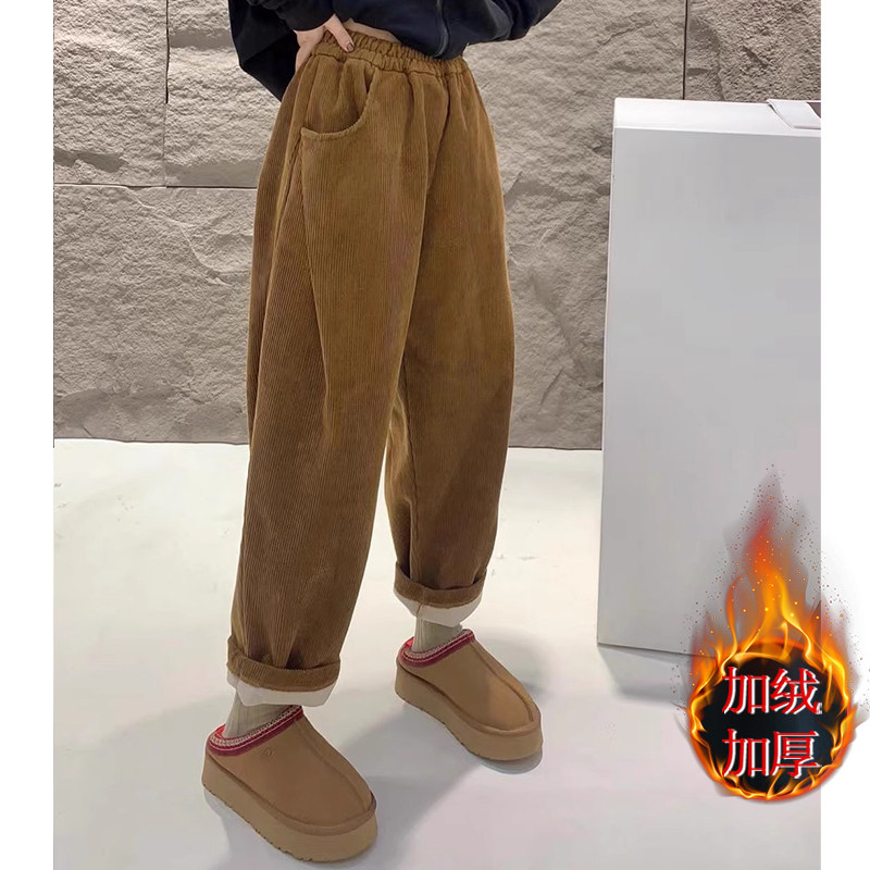 Вельветовые демисезонные утепленные штаны, утепленный фонарь, свободный крой, новая коллекция