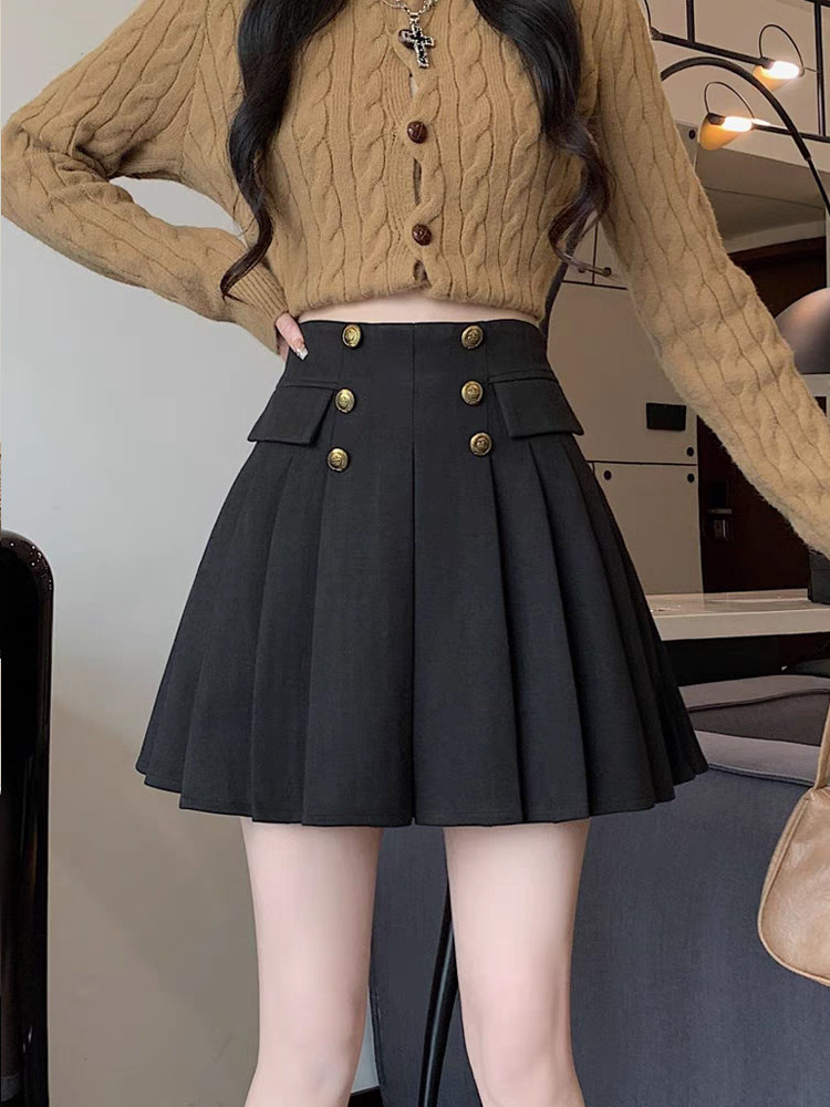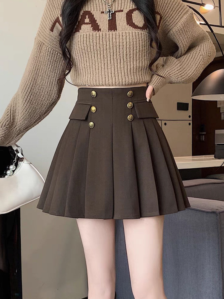 Демисезонная коричневая приталенная юбка в складку, мини-юбка, высокая талия, А-силуэт