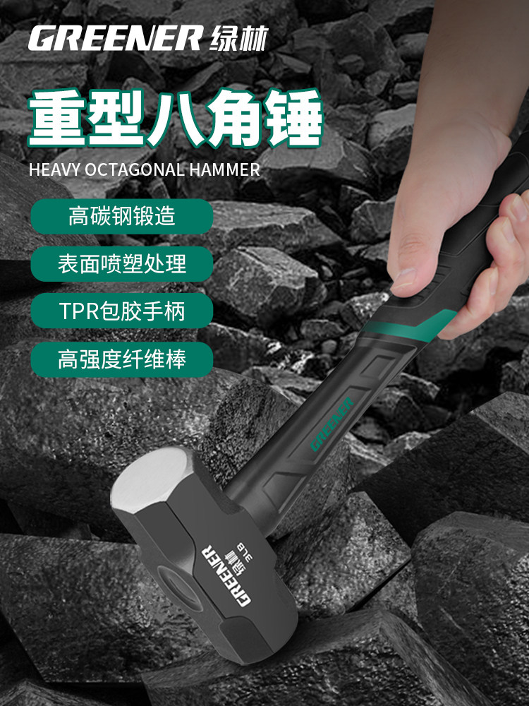 Инструмент с зеленым лесом молот вместе перед восьмиугольником Столонного молотка молот молоток