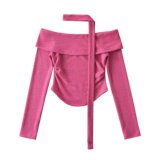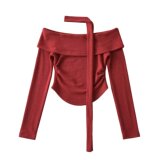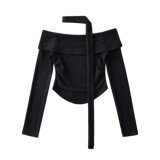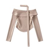Трикотажная изогнутая приятная телу футболка, европейский стиль, открытые плечи
