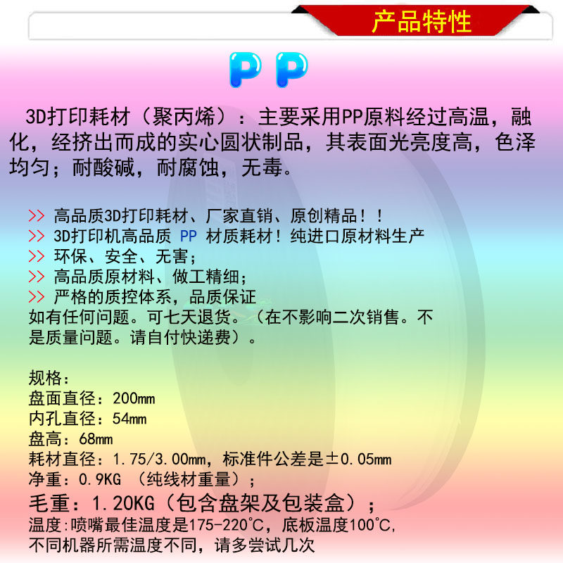 PP расходные материалы FDM проволочная полипропилен 3D -печата