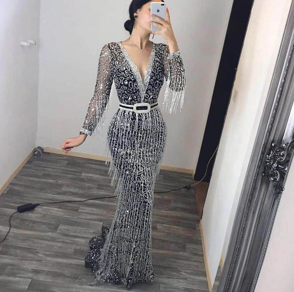 Платье с длинными рукавами платья с блестками для вечеринки вечернее платье