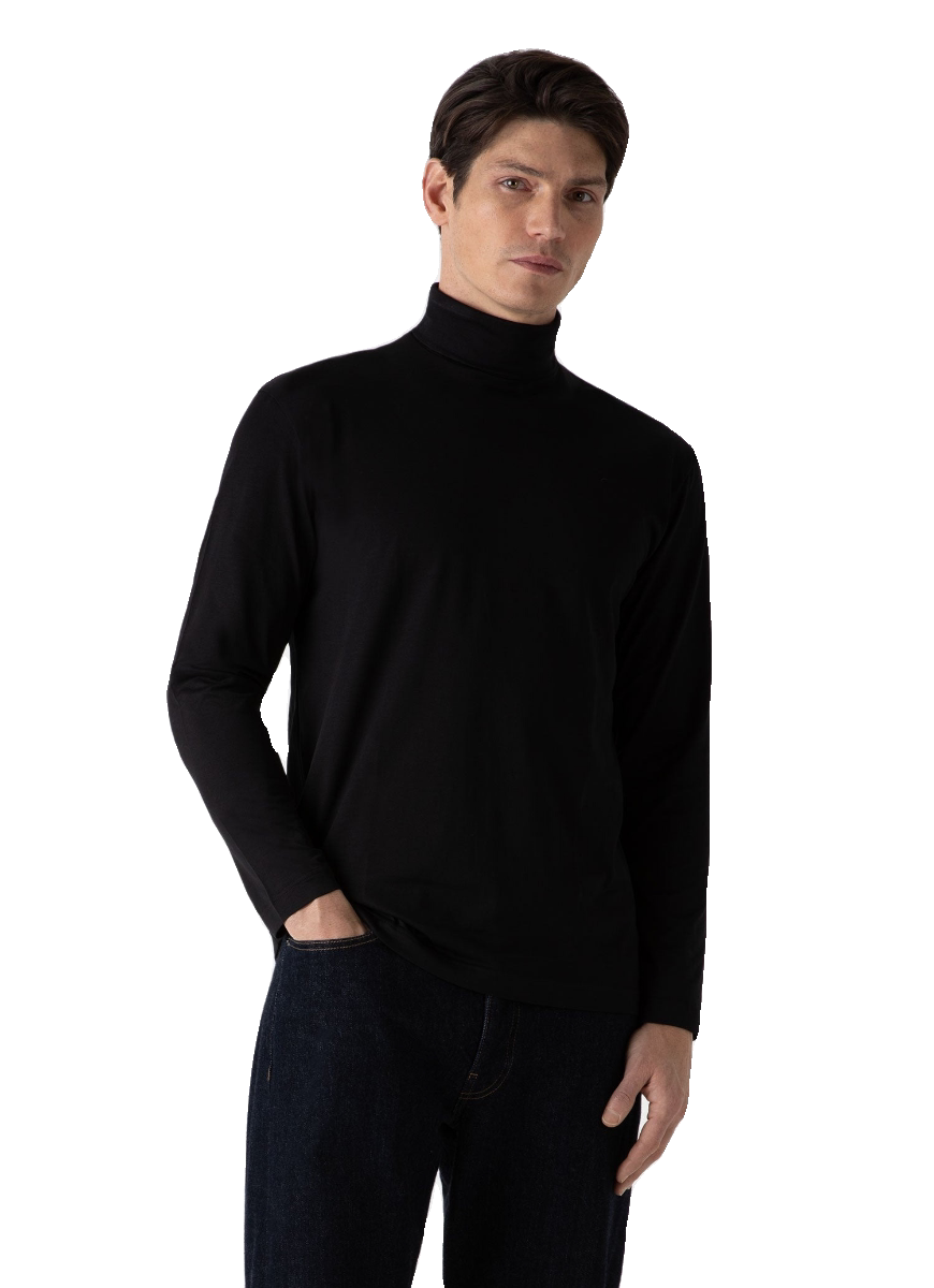 Британский топ SUNSPEL с длинным рукавом и высоким воротником из хлопка Pima с водолазкой и длинными рукавами