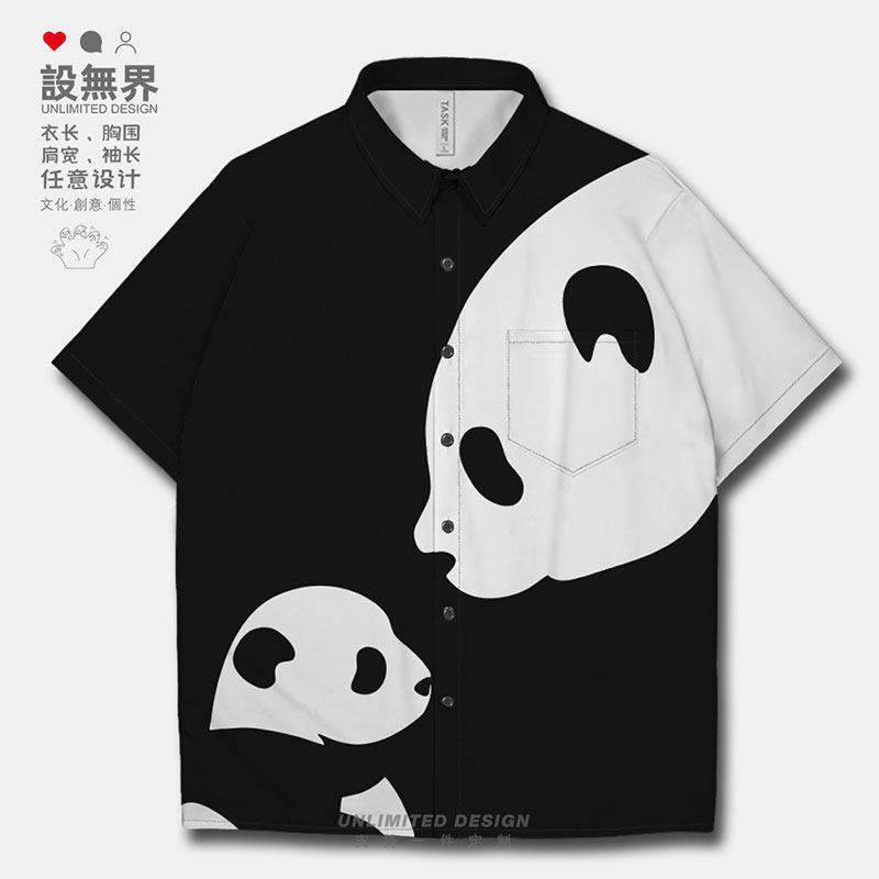 Дизайн без границ, стиль Гонконга, шикарное национальное достояние, силуэт панды, нишевый дизайн, рубашка большого размера с короткими рукавами для мужчин и женщин 0015