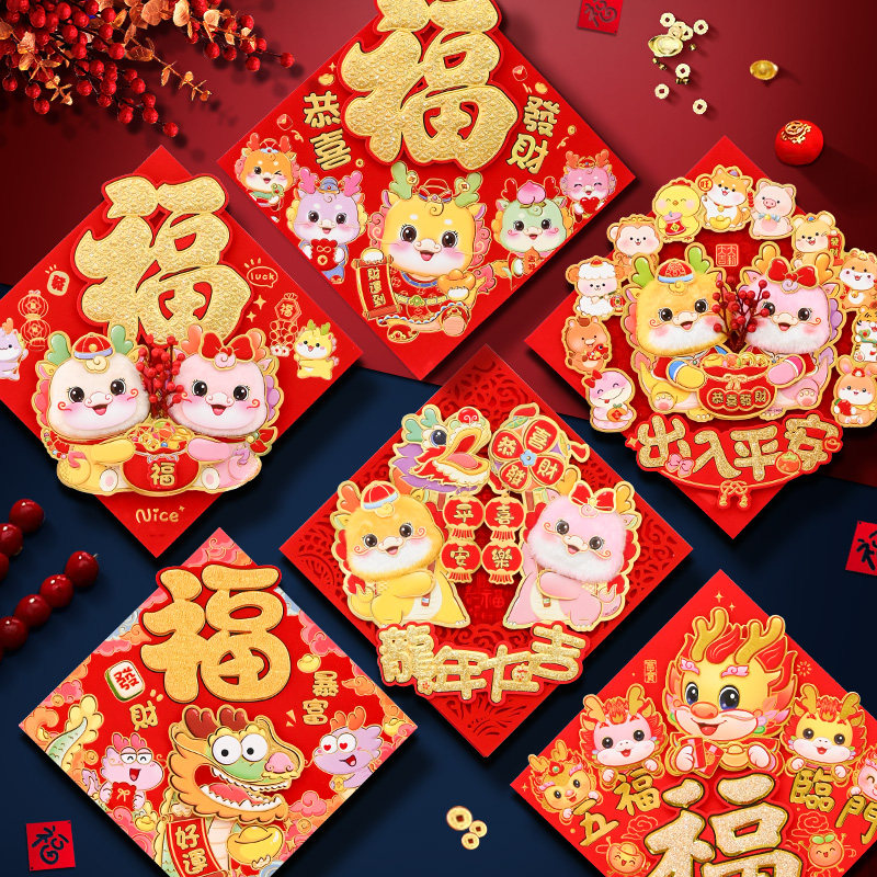 Suda Longnian Fu Zi Gate Patch 2024 Новый год Doufang Gate Sticker Patching Spring Festival Cartoon Cartoon Cartoon Wall Paste для Нового года