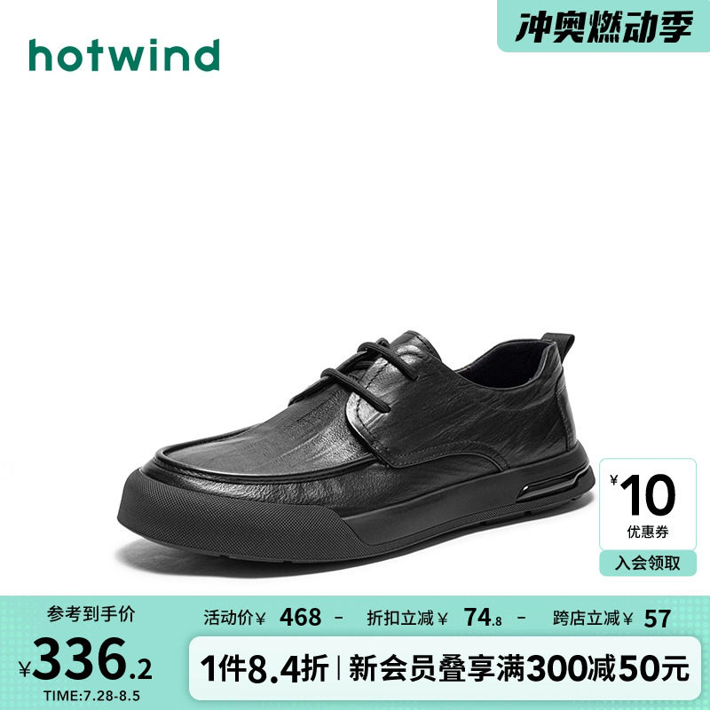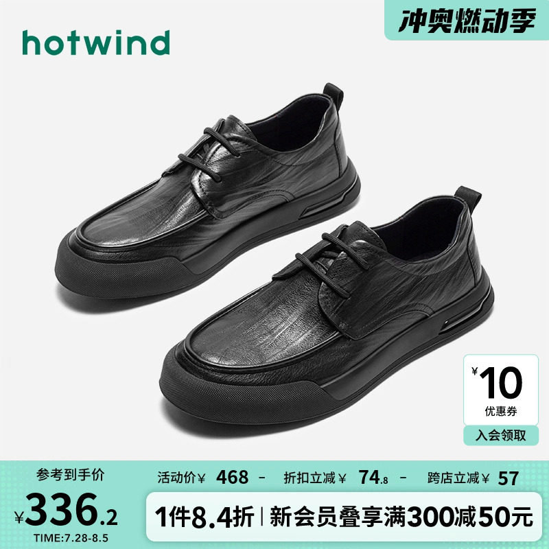 Мужская обувь Hot Wind, новинка 2024 года, весенняя новая мужская модная повседневная обувь, повседневная кожаная обувь из воловьей кожи с круглым носком на шнуровке и верхним слоем для мужчин
