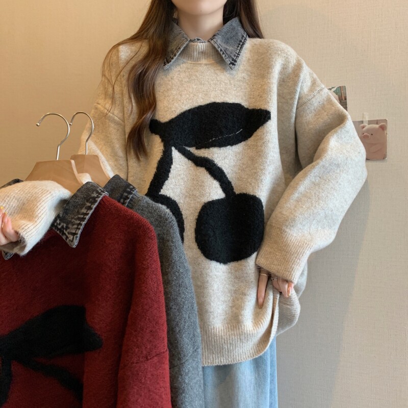 Базовый комплект, весенний джинсовый свитер, большой размер, тренд сезона, оверсайз
