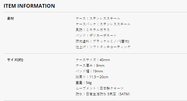Последние часы на 2019 год, оснащенные поликарбонатным браслетом.Корпус ультрасовремен, с толщиной всего 9 мм и ультра-освещенным весом всего 54 г. Поверхность покрыта мягким сенсорным покрытием с резиновой текстурой.Хотя часы все черные, руки и циферблата сделаны из черной светящейся краски (светящаяся краска), чтобы обеспечить чистое и узнаваемое ночью.Кроме того, эти часы являются водонепроницаемыми до 5 бар, что делает их подходящим для ежедневного износа.Это культовая коллекция бренда.