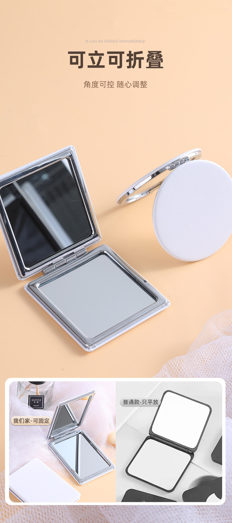 Переносное маленькое двусторонное портативное складное зеркало для школьников