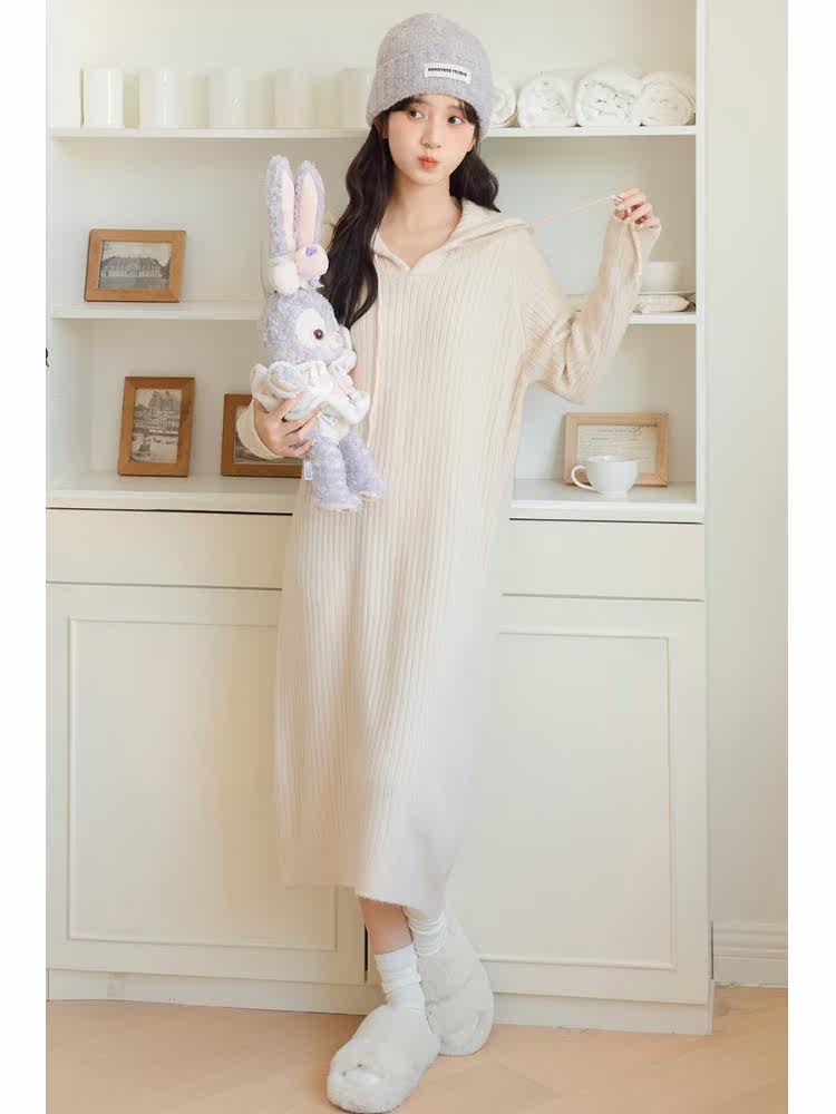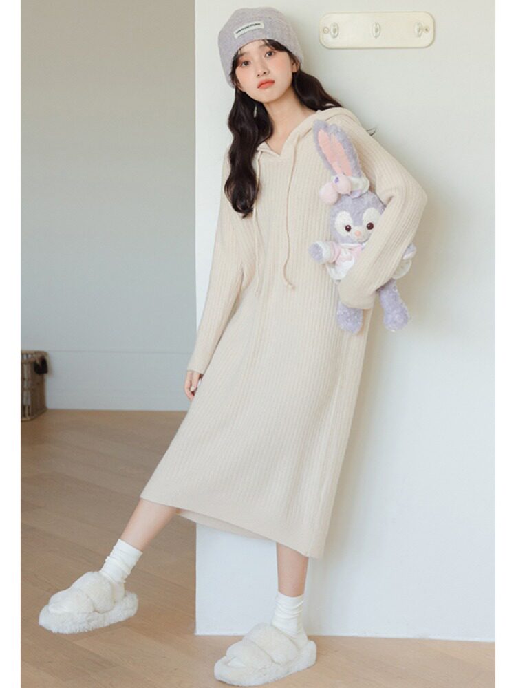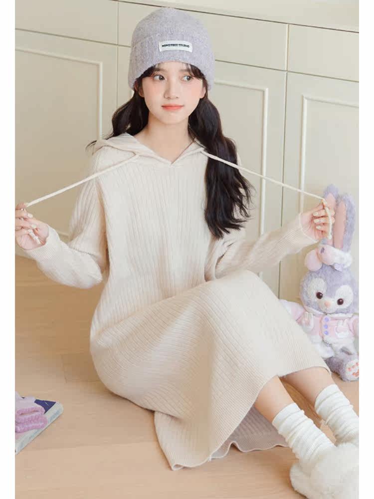 Демисезонное однотонное трикотажное платье, базовая длинная юбка с капюшоном, средней длины