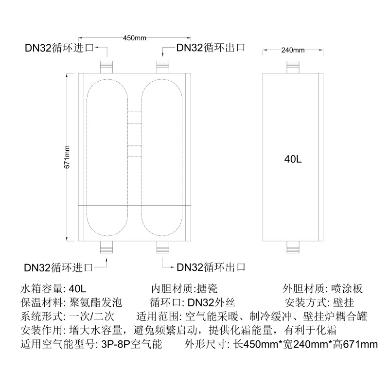 - 40L Square Size 450*240*671/81E