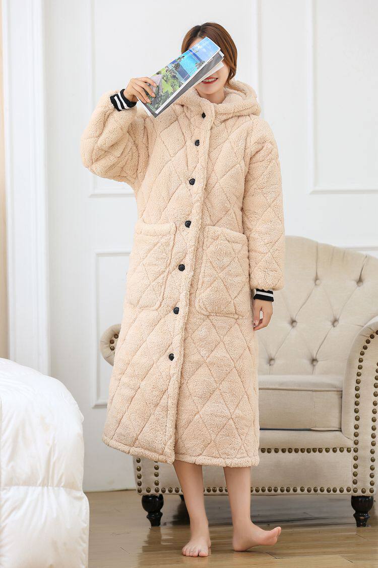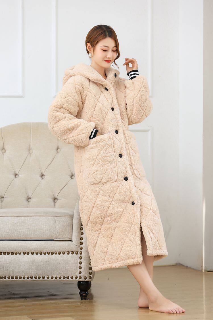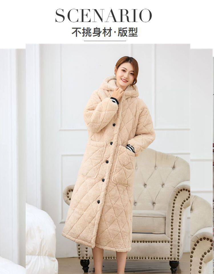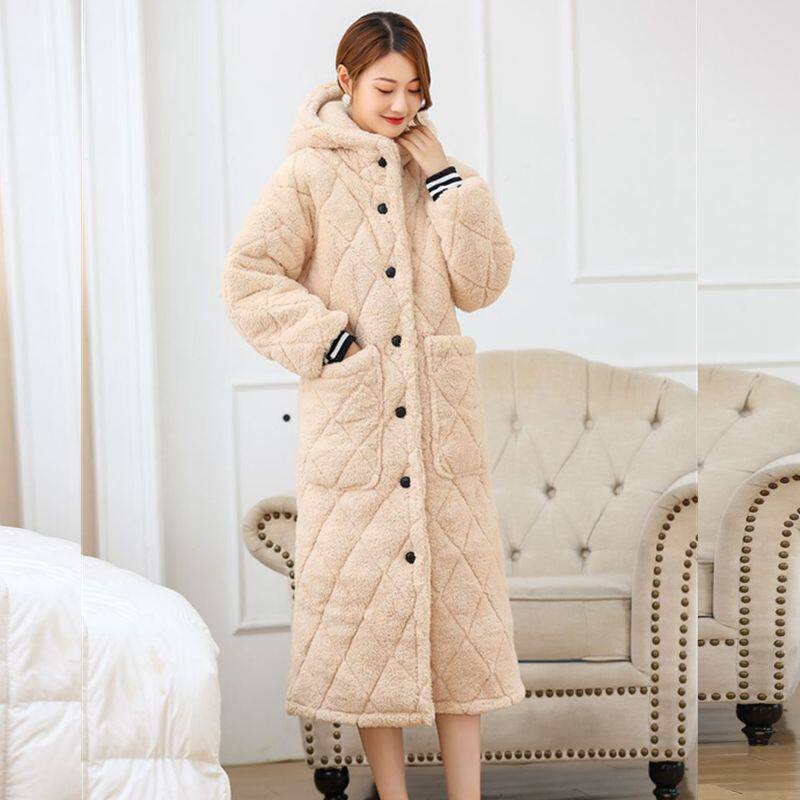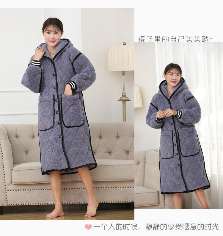 Зимний бархатный банный халат, стеганая длинная пижама с капюшоном, увеличенная толщина
