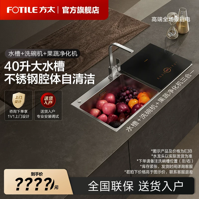Раковина Fangtai Раковина посудомоечная машина CT03A/CT03BL интегрированная интегрированная интеграция встроенная полная -Автоматическая домашняя двойная машина для кисти.