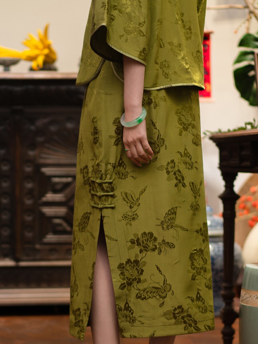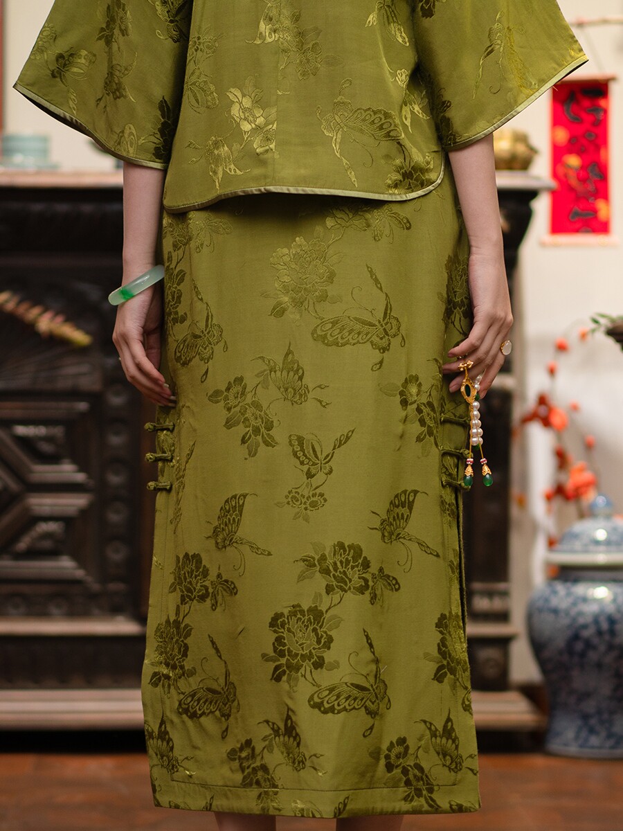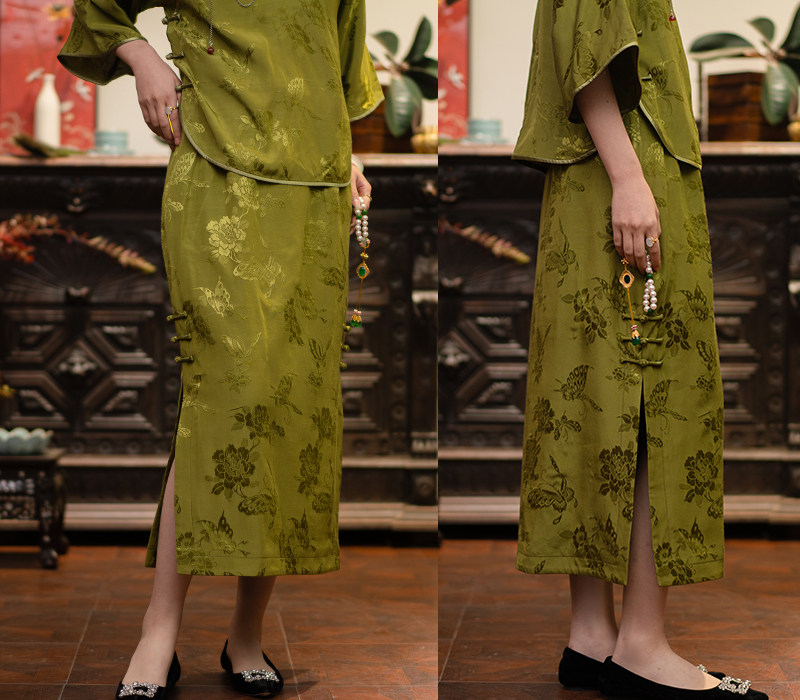 2024 Новая PCY1692 Армия зеленая бабочка любовь цветочная ручная ручная длинная юбка Длинная юбка с хип -карандаш