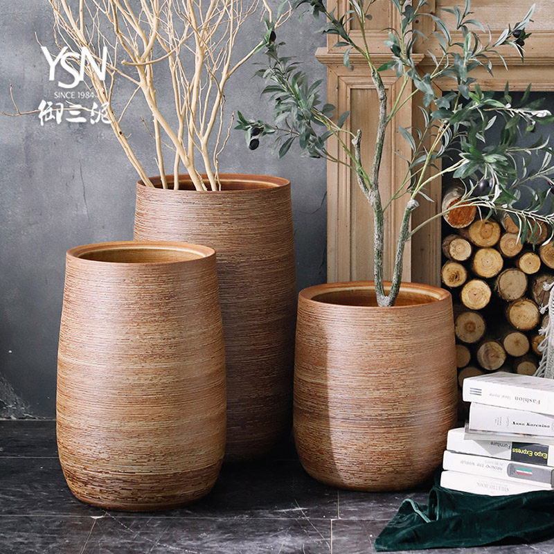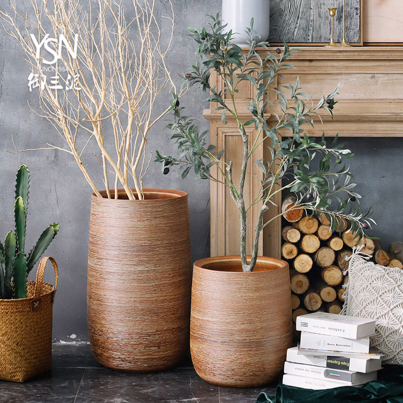 Индивидуальные большие вазы с украшениями для гостиной, напольная цветочная композиция, скандинавское украшение для дома, креативные простые зеленые растения, керамические сосуды для цветов