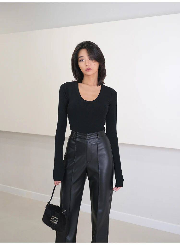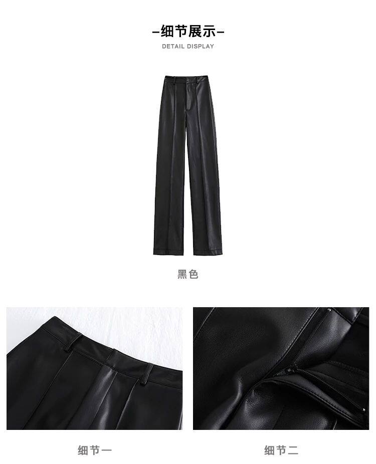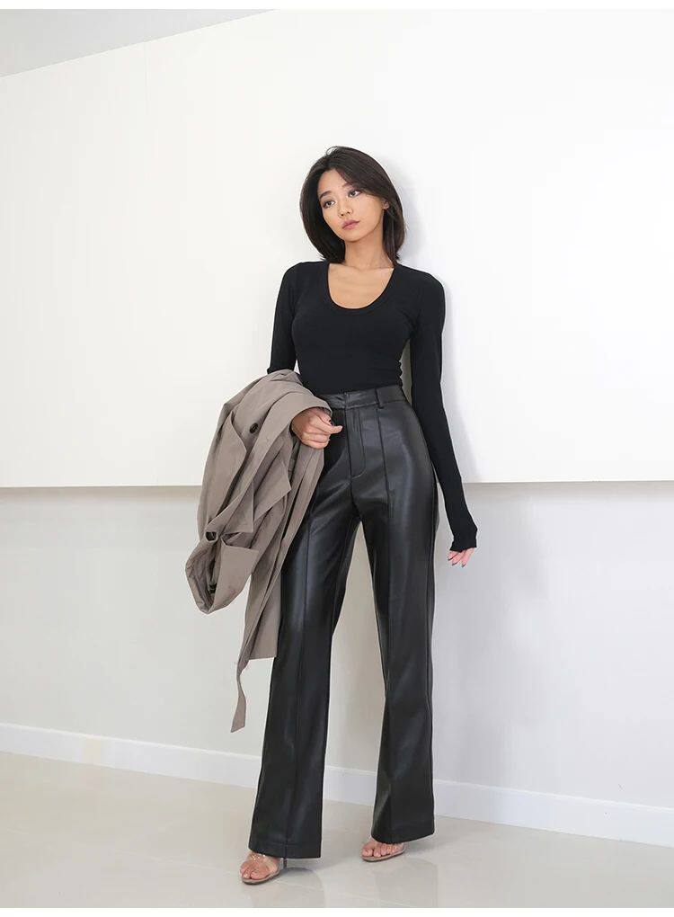 Lautaro Spring Awomm Long Black Soft Pu Кожаные брюки Женщины