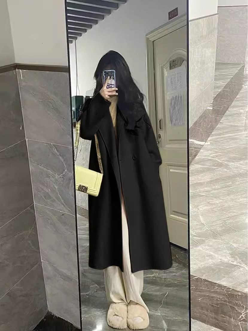 Длинное демисезонное шерстяное пальто, куртка, подходит для подростков, премиум класс, средней длины