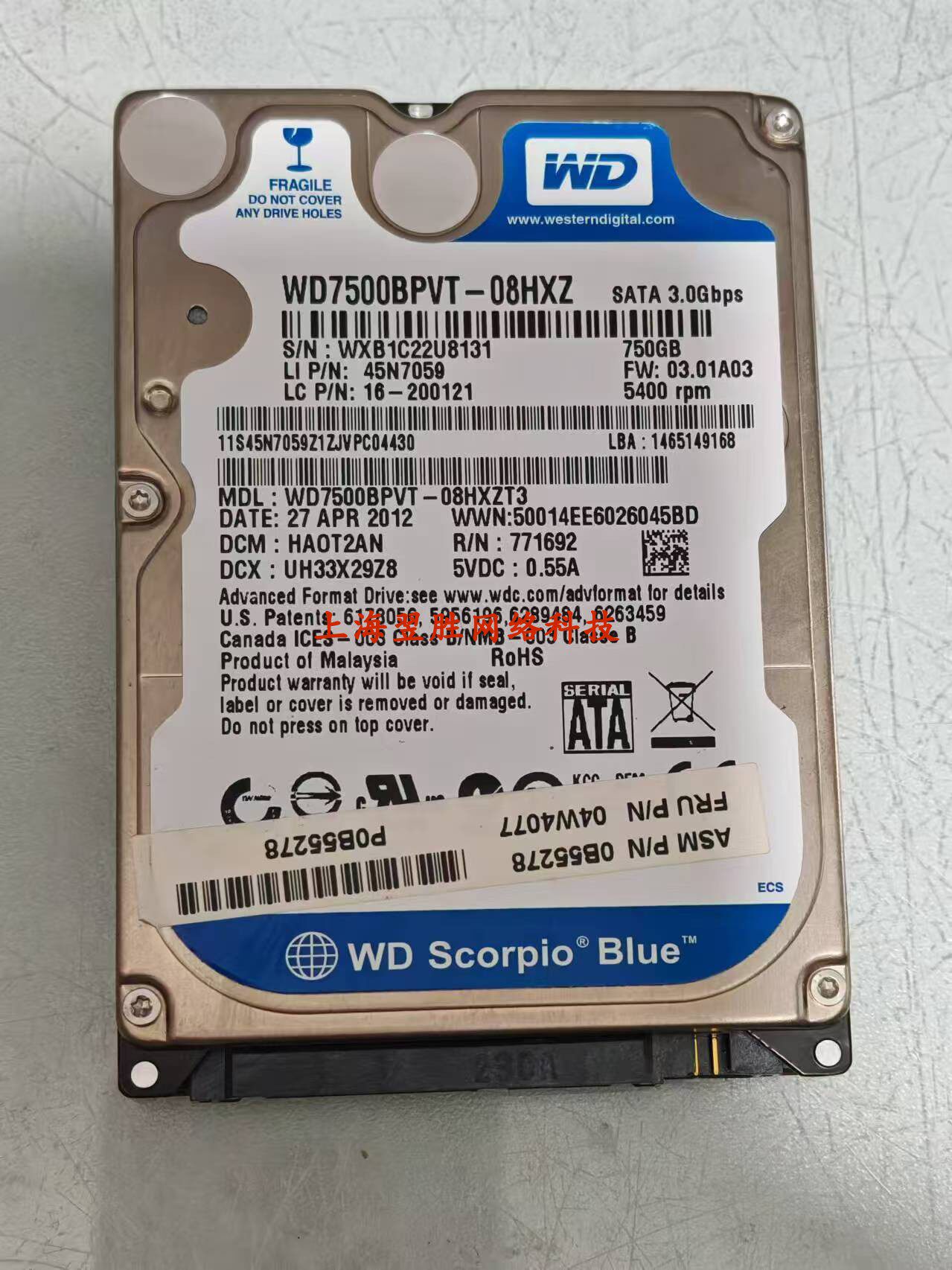 Real Shot Second -Hand WD Western Data 1TB 5400 об / мин SATA3 WD10JPVX Механический жесткий диск 2.5 -INCH BLUE DISK