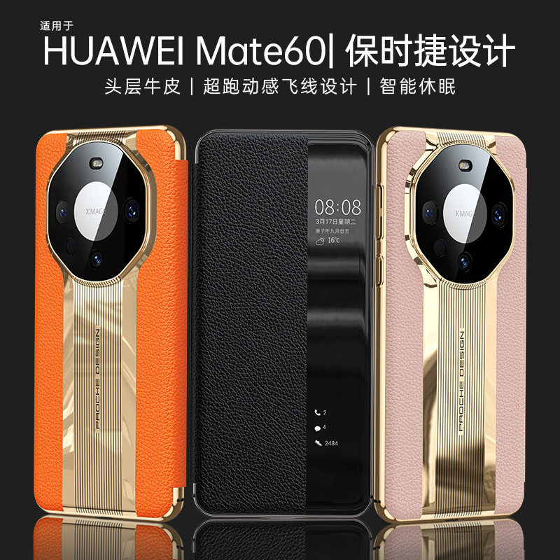 Подходит для пользователей кожи, чехол для мобильного телефона Huawei Mate60Pro mate60rs из натуральной кожи с умной откидной крышкой мгновенно превращается в универсальный защитный чехол Porsche от падения с мелкими отверстиями, бизнес-светильник Luxury Pro + откидной телефонный звонок 60+