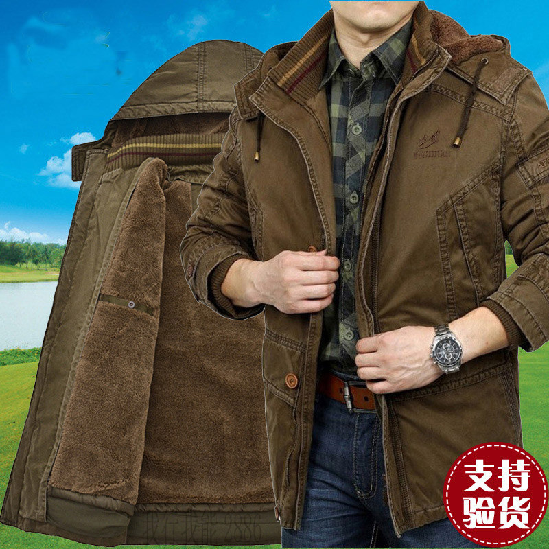 Съемный вкладыш, длинный хлопковый пуховик, удерживающий тепло плащ, куртка, для мужчины среднего возраста, средней длины, большой размер, увеличенная толщина