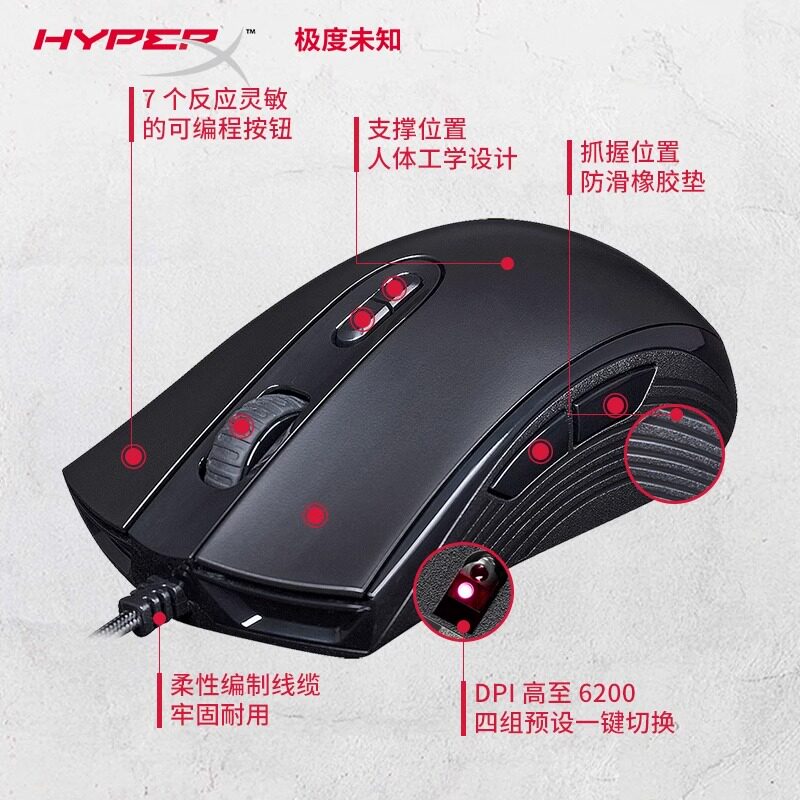 Hyperx Extreme неизвестный импульсный игровой мышь RGB E -Sports Wired Computer Computer Universal Chutke
