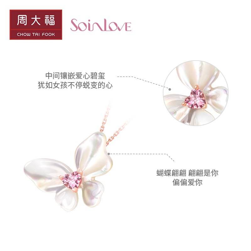 周大福 Soinlove "Treasure Girl" Бабочка плонг 18 тыс. Золотая турмалиновая бай -бай