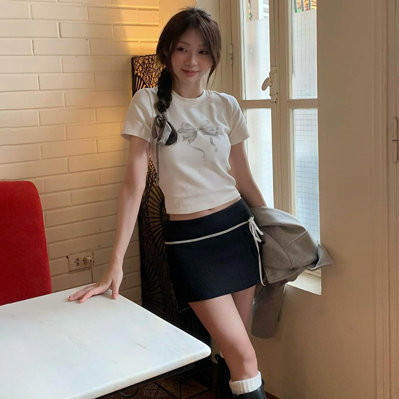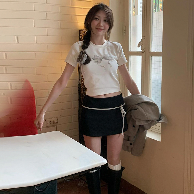 Милый ремень с бантиком, базовая юбка, простой и элегантный дизайн, яркий броский стиль, свободный прямой крой