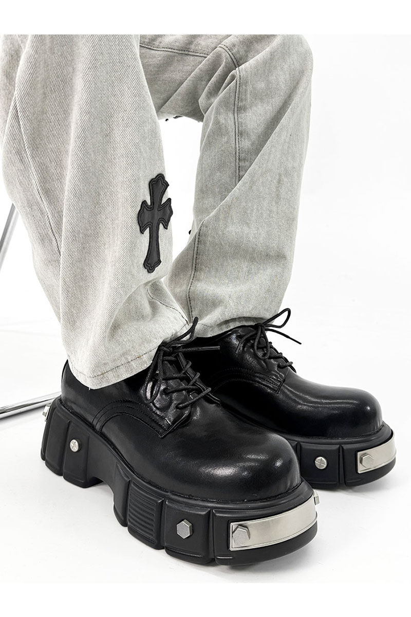Cleanfit Nishe Iron Head Head Derby Shoes Mension's Senior Function Function круглый скальп обувь британская толстая дно увеличить большие туфли с головой