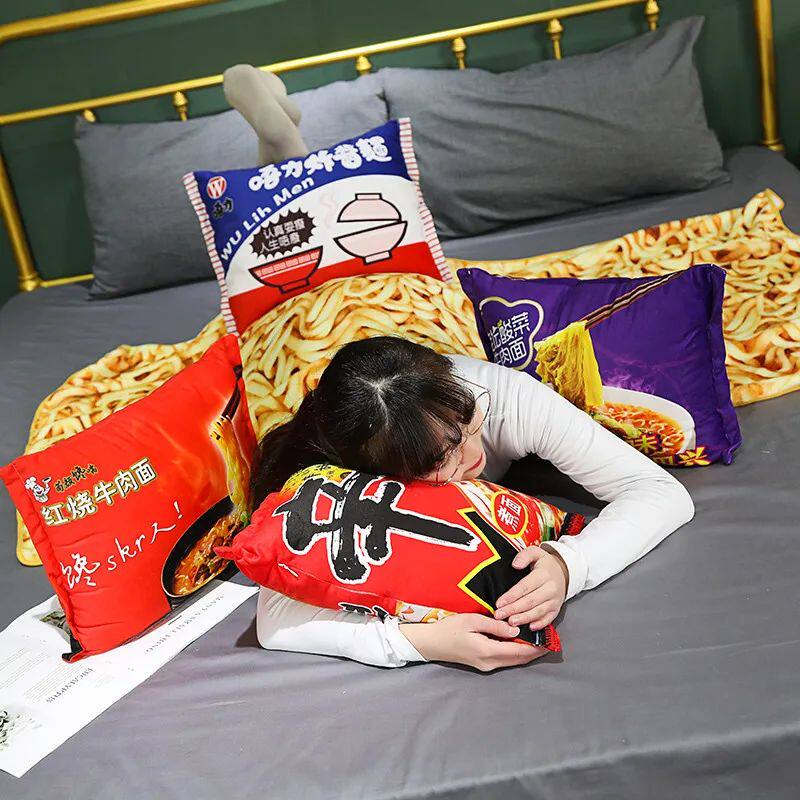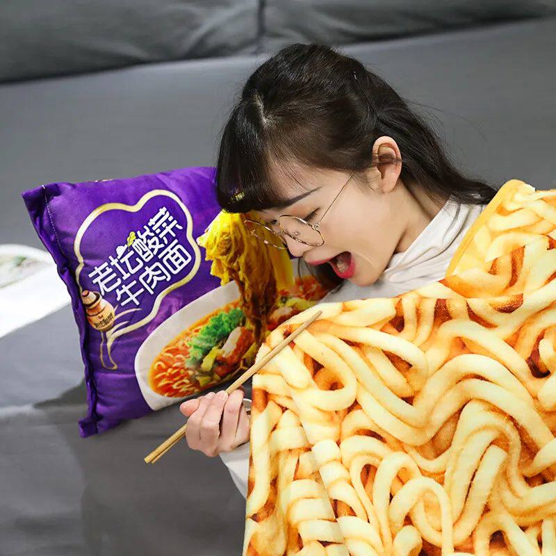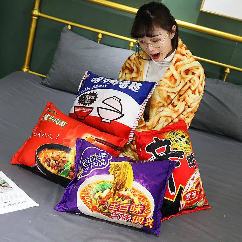 Kawaii одеяло, имитация лапши быстрого приготовления, плюшевая подушка с одеялом, фаршированная говядиной, жареная лапша, подарки, плюшевая подушка, плюшевая игрушка с едой