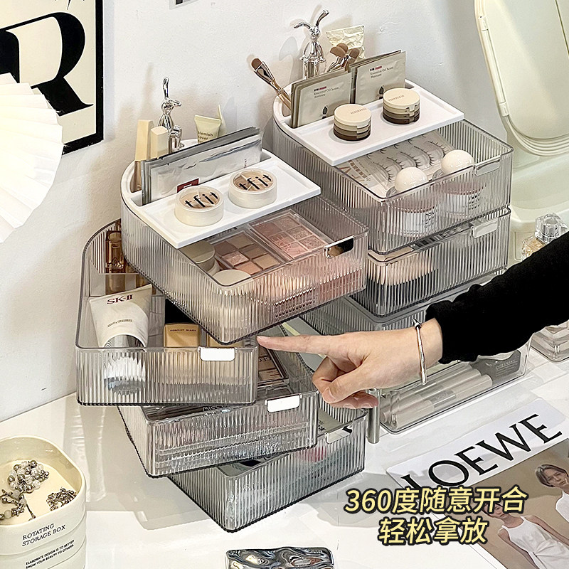 Крутящаяся косметическая коробка для хранения, настольный туалетный столик, помада, кисть, система хранения, изысканный стиль