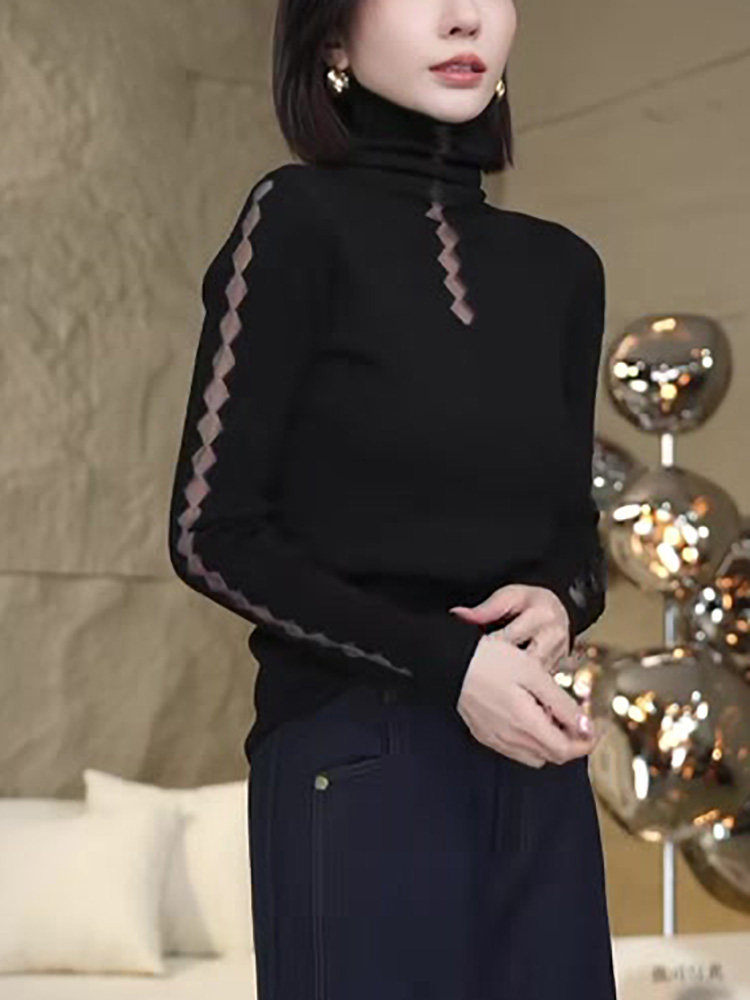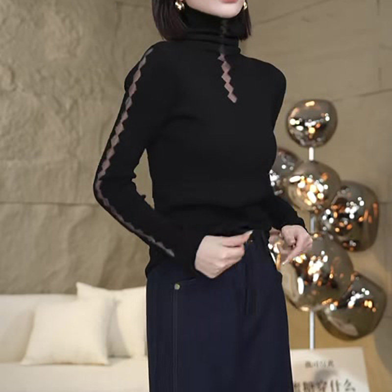 Черный цветной трикотажный демисезонный дизайнерский свитер, высокий воротник, 2024 года, тренд сезона