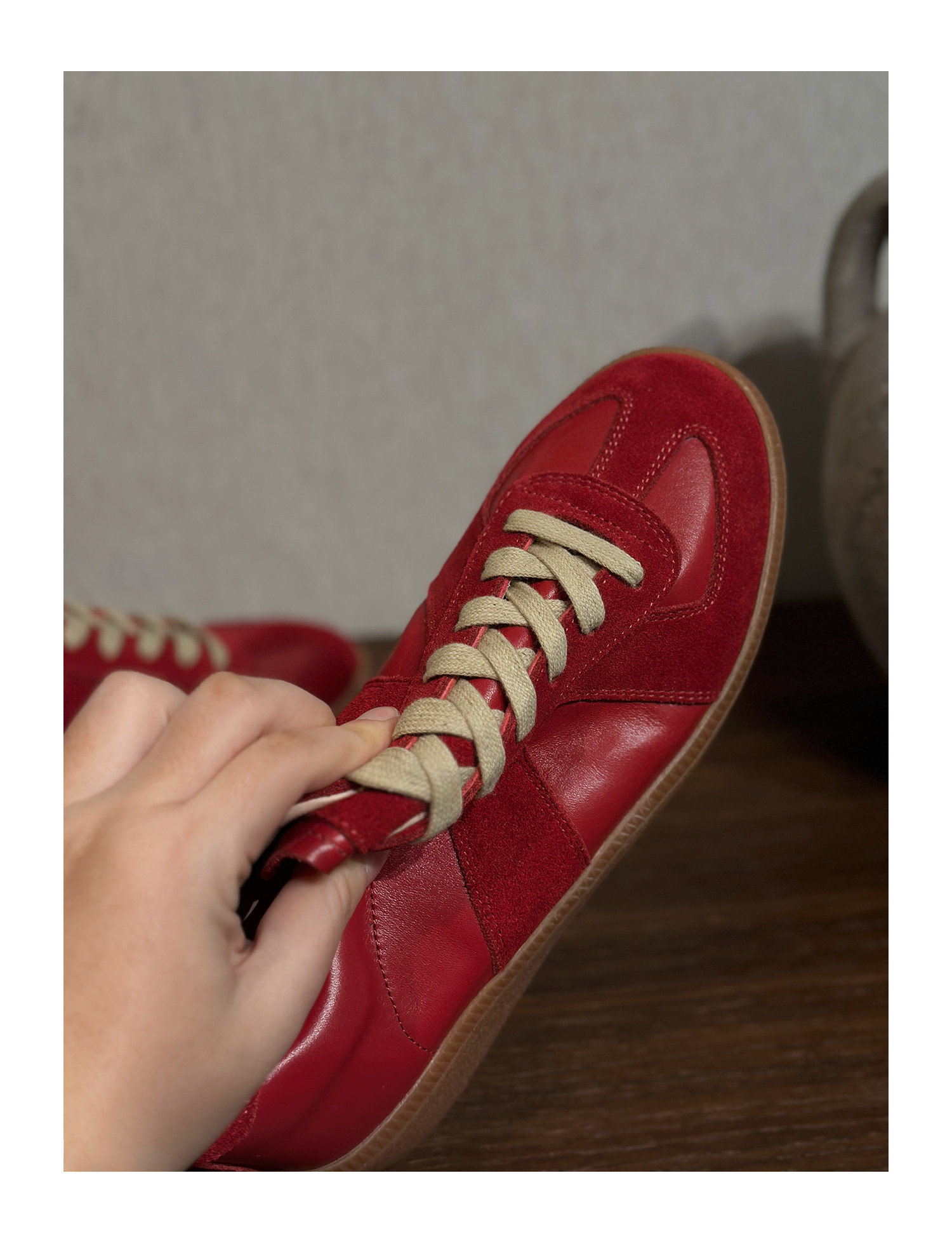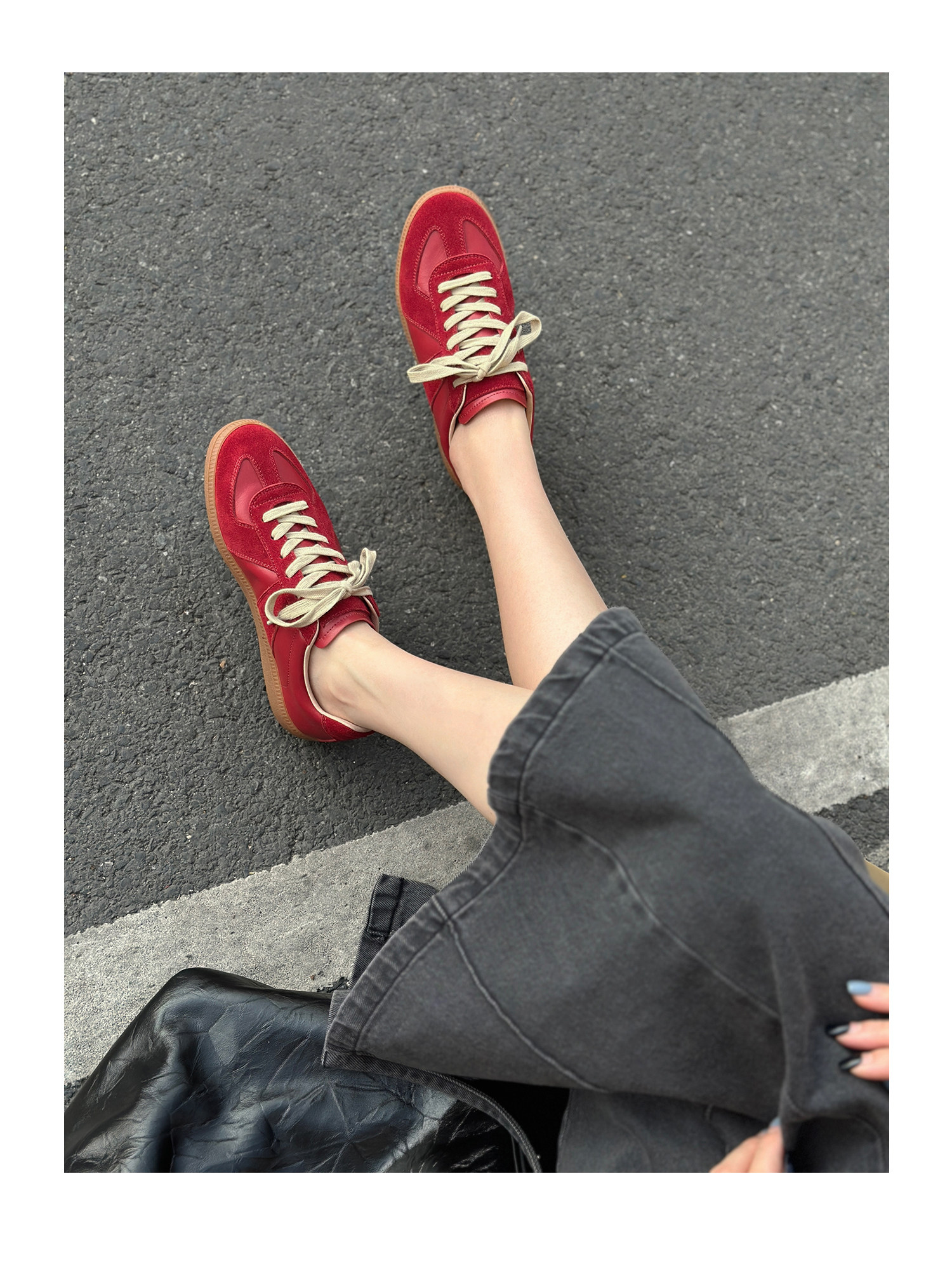 Красная спортивная обувь для отдыха, кроссовки, из натуральной кожи