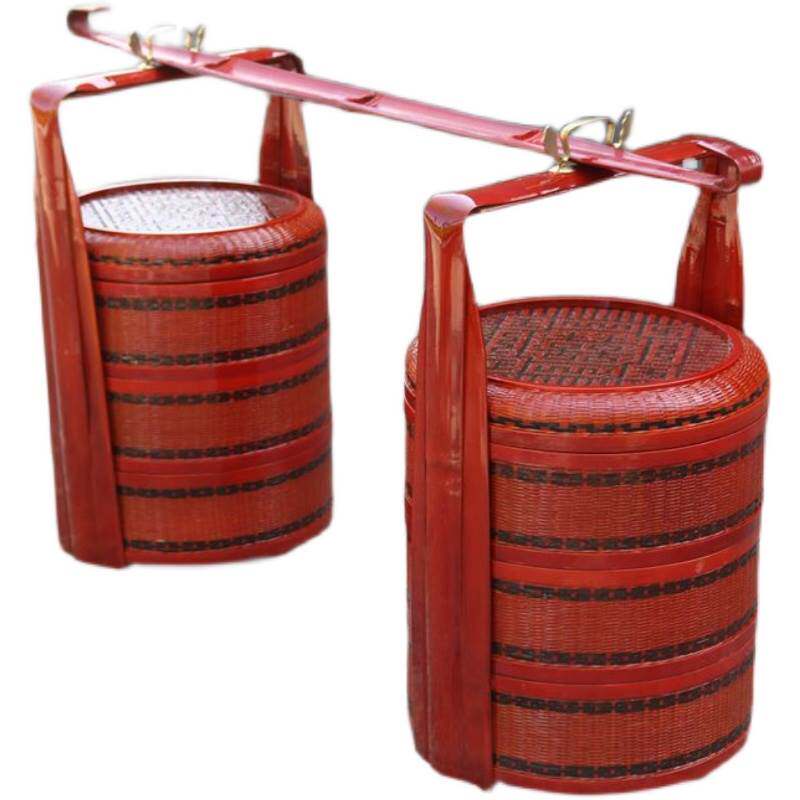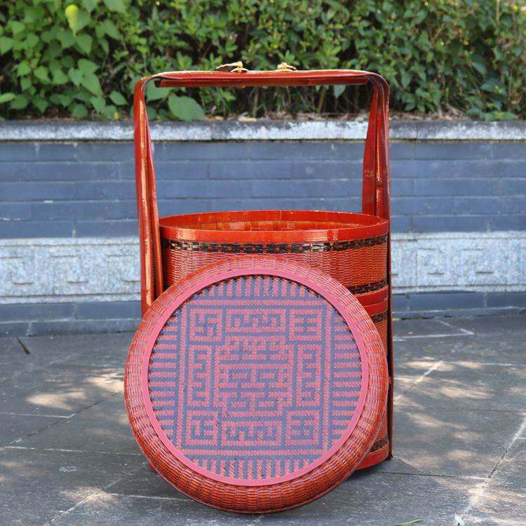 Ручная бамбука бамбука бамбука продукты свадебная пищевая коробка с корзиной с корзиной с пакетами Свадебная корзина Свадебная корзина для биллевой подарочной корзины многослойная ретро-бамбуковая корзина